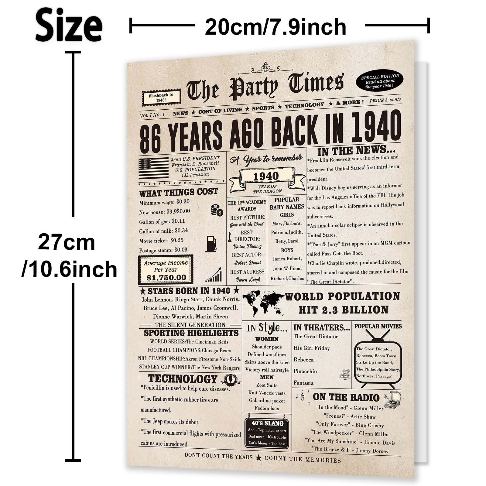 【Product Size】A 10.6 x 7.9 inches 86 years old birthday card stands out for its oversized size. It comes with an envelope for easy mailing or gifting
