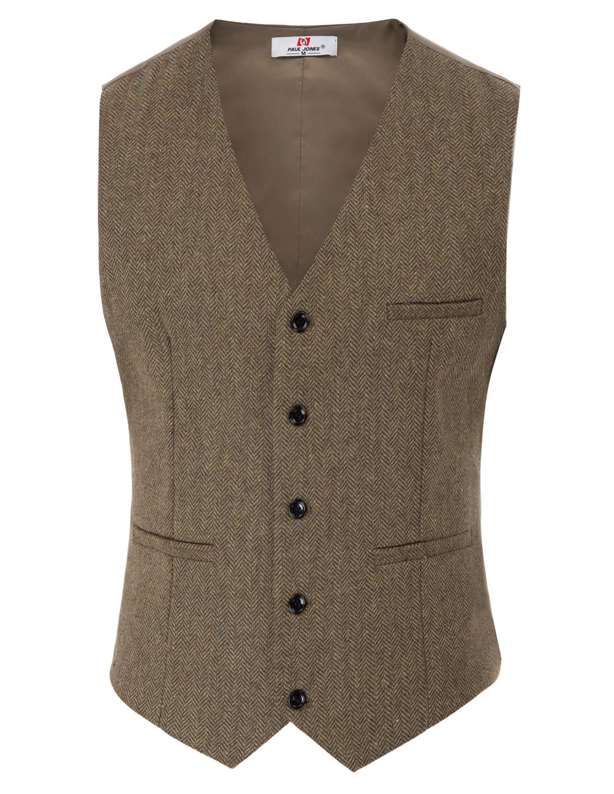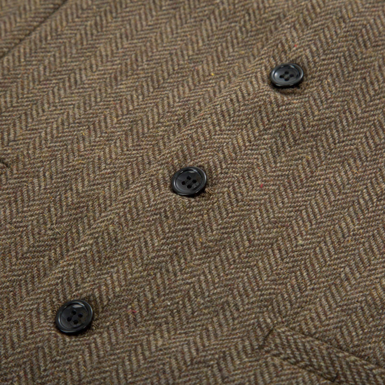FEATURES: Sleeveless, v-neck, single breasted, handkerchief hem, three real pockets in the front, 5 buttons, wool blend, premium tailored, strap in the back waist, adjust for best fit, front is tweed fabric, back is satin, polyester lining