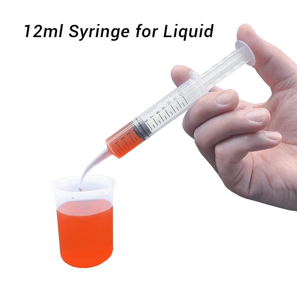 50 Pack 12ml Syringes with Curved Tip & measurement scale.