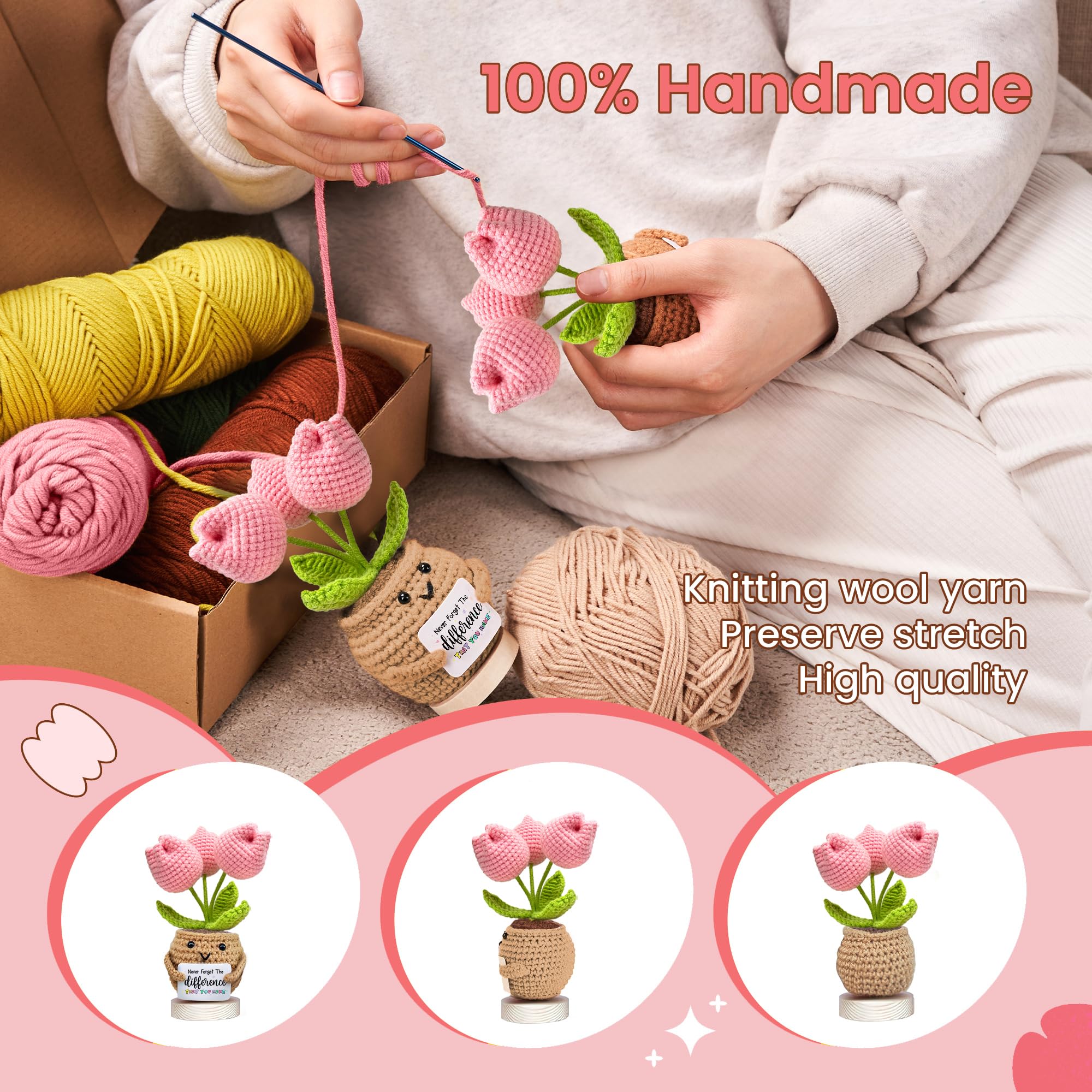 🧶100% Handmade Knitted Positive Tulip Flower: bearing an inspiring message, this tulip flower crochet doll is lovingly crafted by expert artisans.