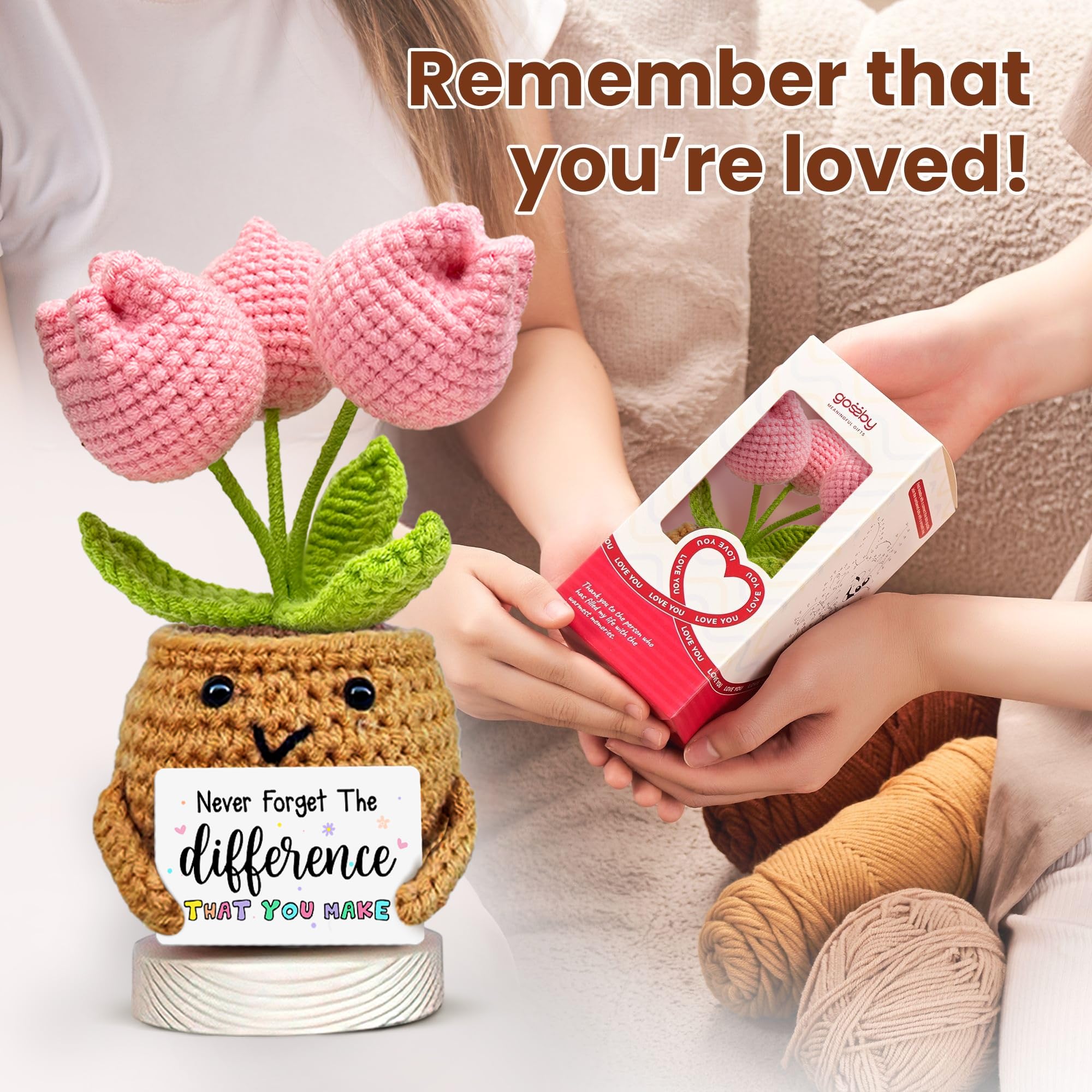 💕An Inspirational Gift for Women: this NEVER FORGET THE DIFFERENT THAT YOU MAKE positive tulip flower doll crochet will embrace your loved one in a warm hug. This one will surely bring a big smile to her face.