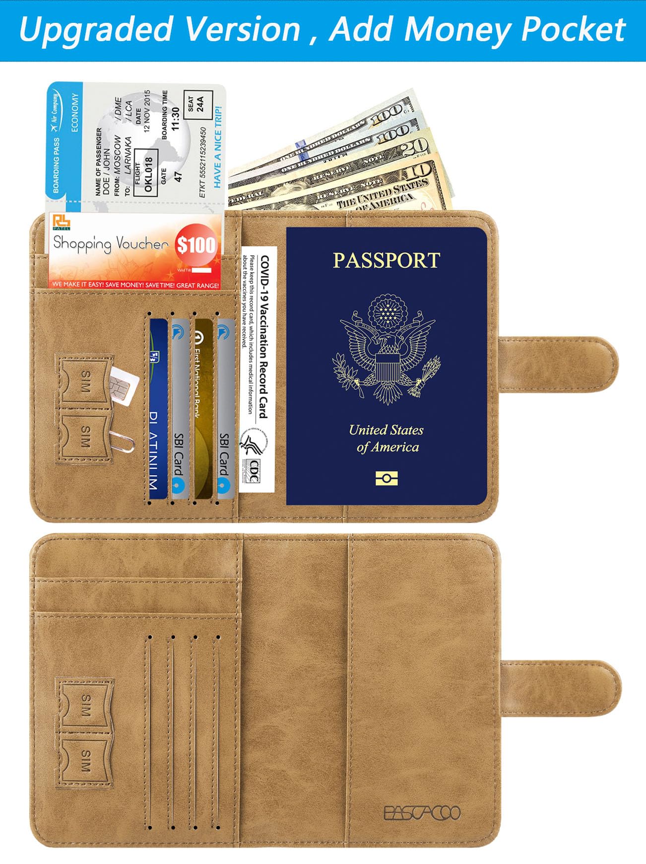 【HIGH-QUALITY SYNTHETIC LEATHER】 - The passport holder with vaccine card slot is designed specially for passport and vaccine card. Passport cover made from premium high-quality ECO-Friendly synthetic leather, touch soft and comfortably base on more sponge added.