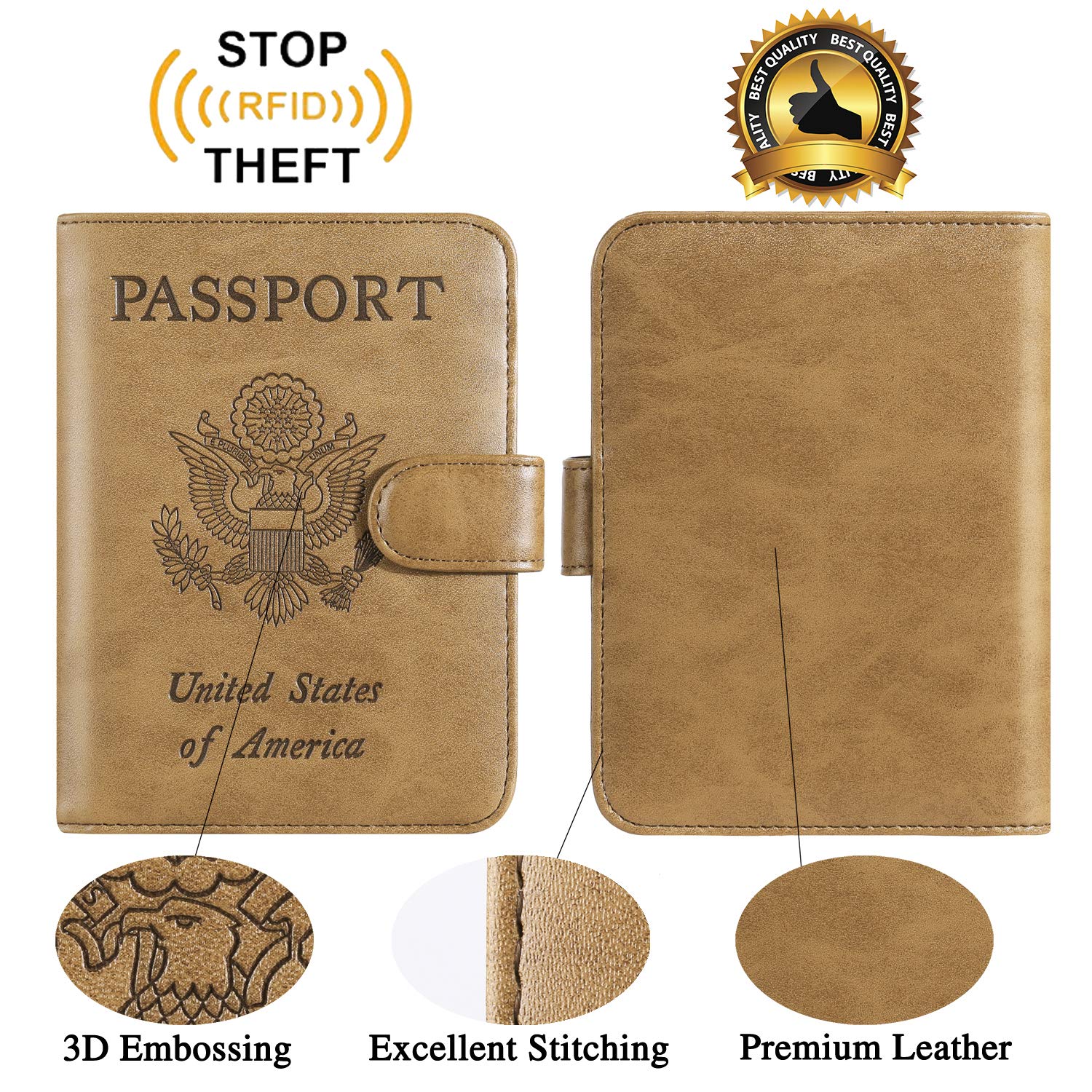 【RFID BLOCKING】 - Our Passport Cover is equipped with advanced RFID BLOCKING SECURE TECHNOLOGY, a stylish metal composite, engineered specifically to block 13.56 MHz or higher RFID signals, such as ID card, Credit card, Debit card, Driver license and keep your personal information securely everywhere.
