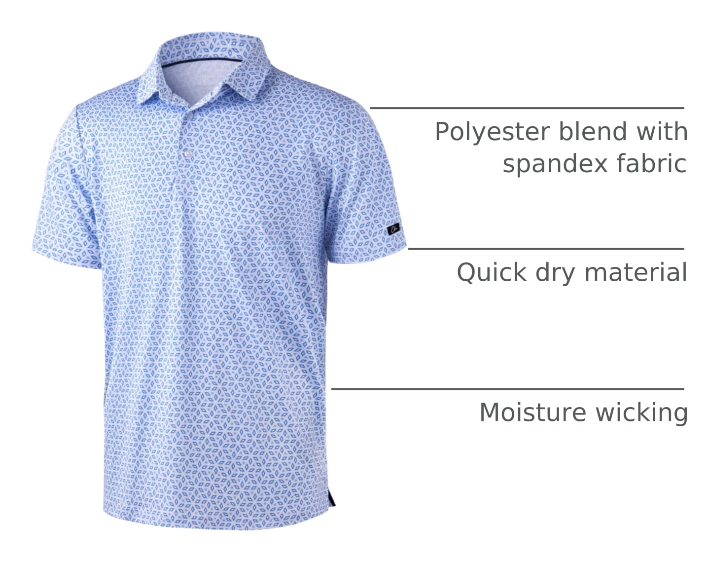 Performance Polo: Breathable, lightweight men's polo shirts is made with moisture wicking and quick dry material, so it will keep you cool and no sticking or clammy feel during those hot months outside. UPF 50+ protect you from the uv light of the sun. The perfect combination for the golf course or any outside sports.