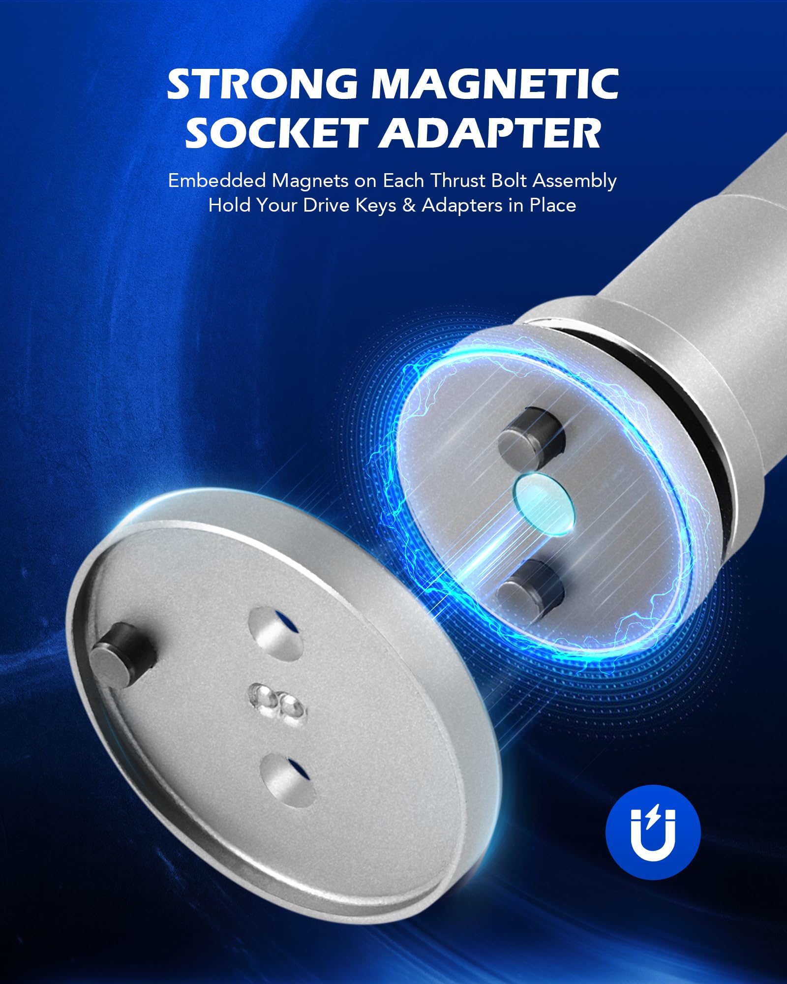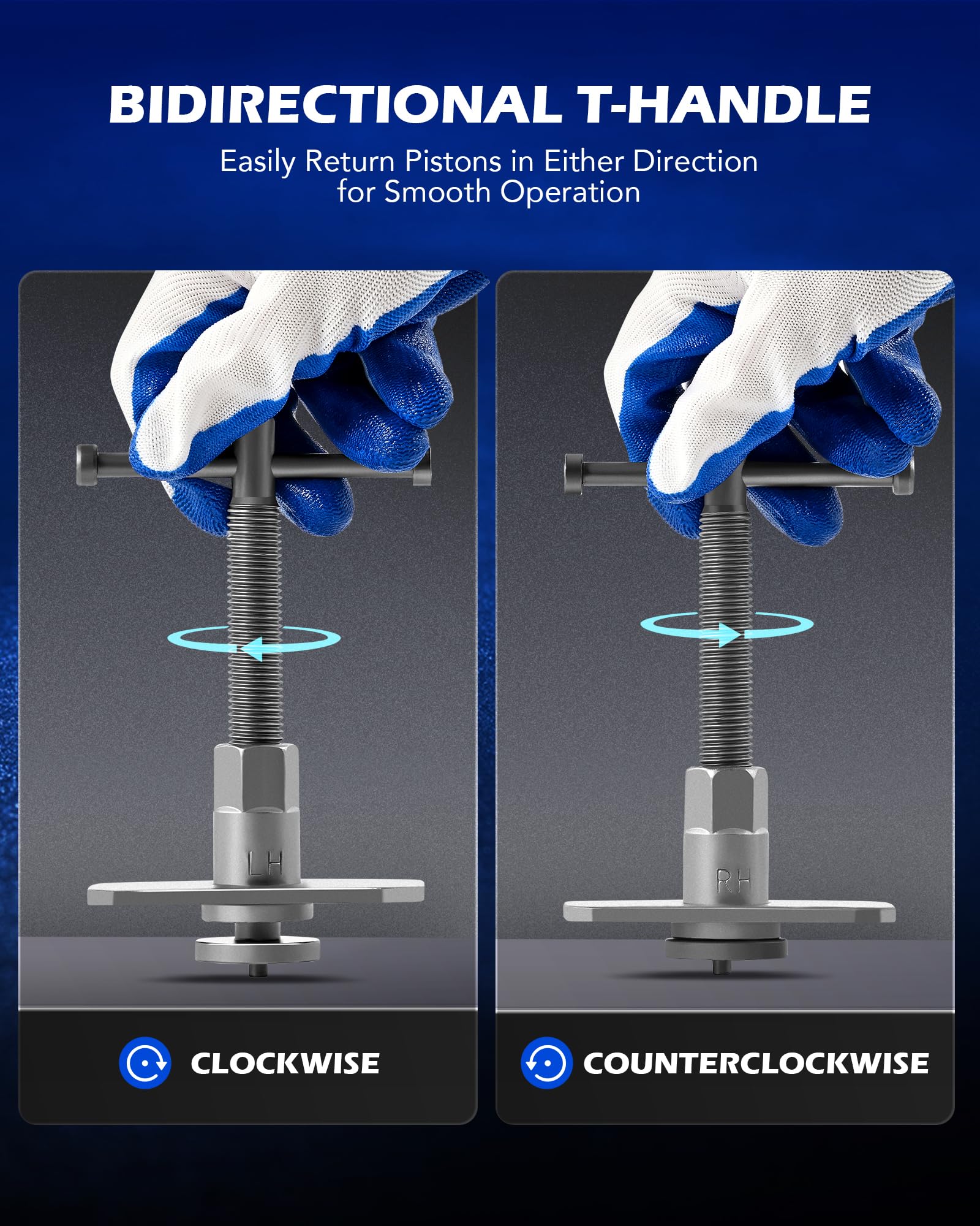 Hassle-Free Use: Simply rotate the pistons back into their calipers to clear the pads. Embedded magnets in each thrust bolt assembly securely hold drive keys and adapters, while the right and left handed designs ensure versatile operation