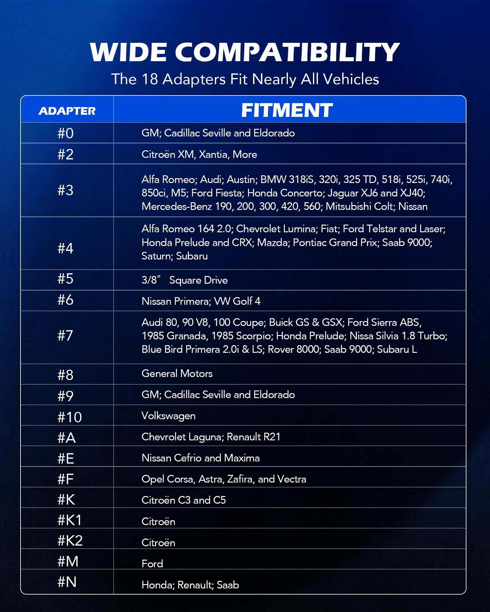 Universal Compatibility: This brake caliper tool kit includes a wide range of adapters to fit most vehicles, including hundreds of American, Japanese, and European models, fully covering your brake servicing needs