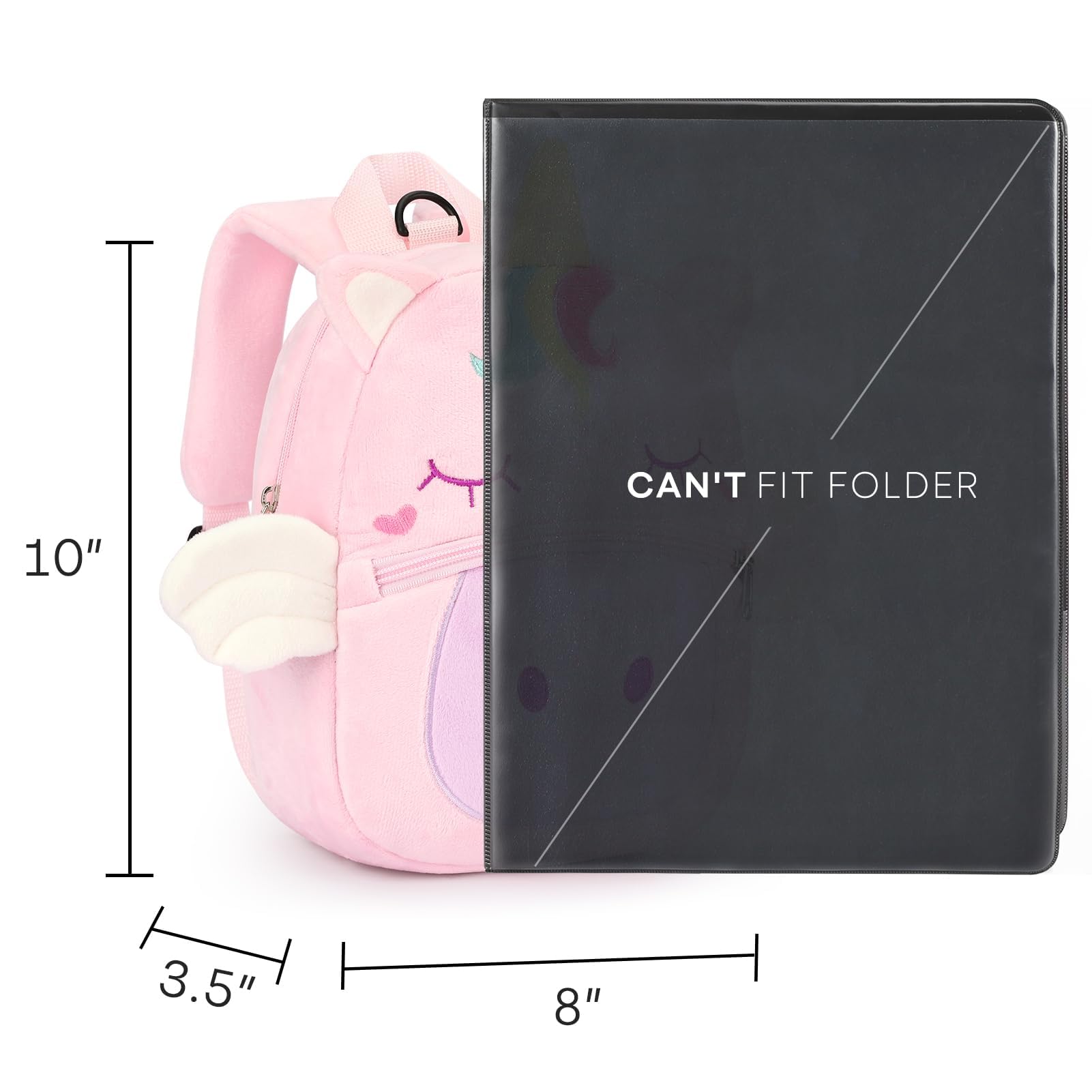 【DIMENSION】 This toddler girl backpack measures 8 x 3.5 x 10 inches. It's the perfect size for kids ages 1~3 years to go to preschool or travel.