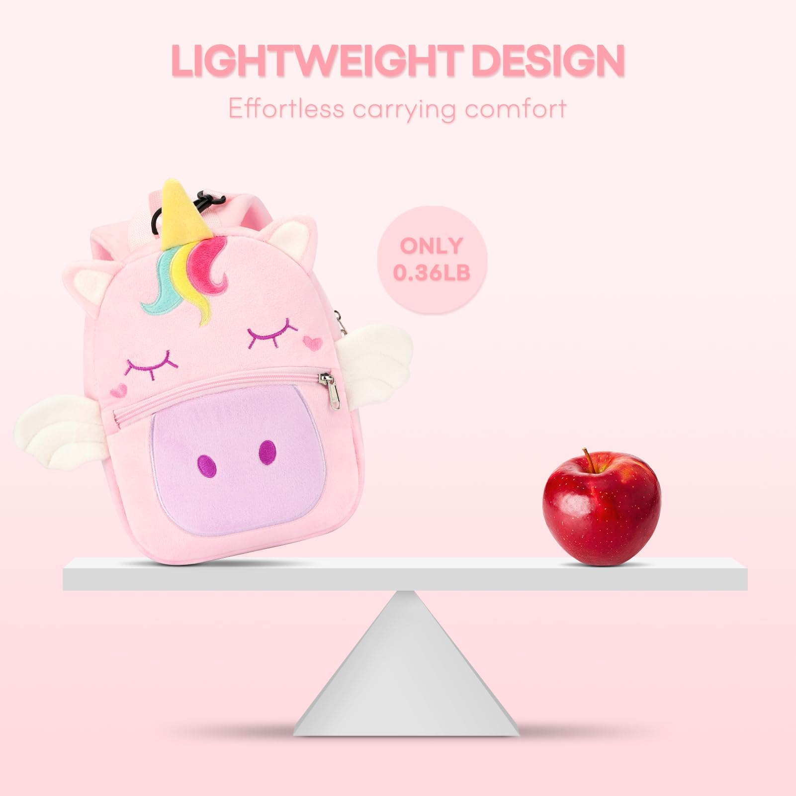 【LIGHT WEIGHT DESIGN】Only 0.36 lbs lightweight design and with a large pocket and cut animal shaped front pocket, this toddler backpack for girls 2-4 offers ample space for small diapers, toys, water bottles, cloths, pants snacks,etc. Great as a kids travel backpack for airplane.