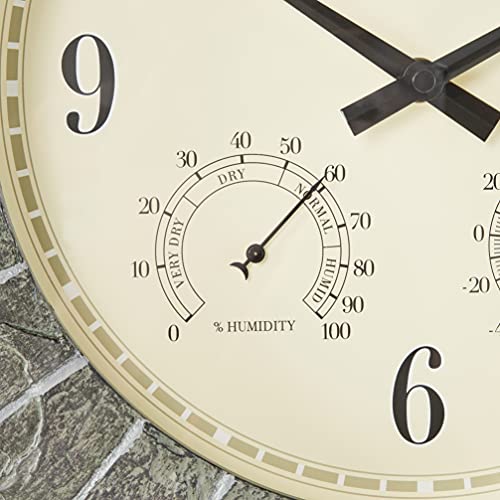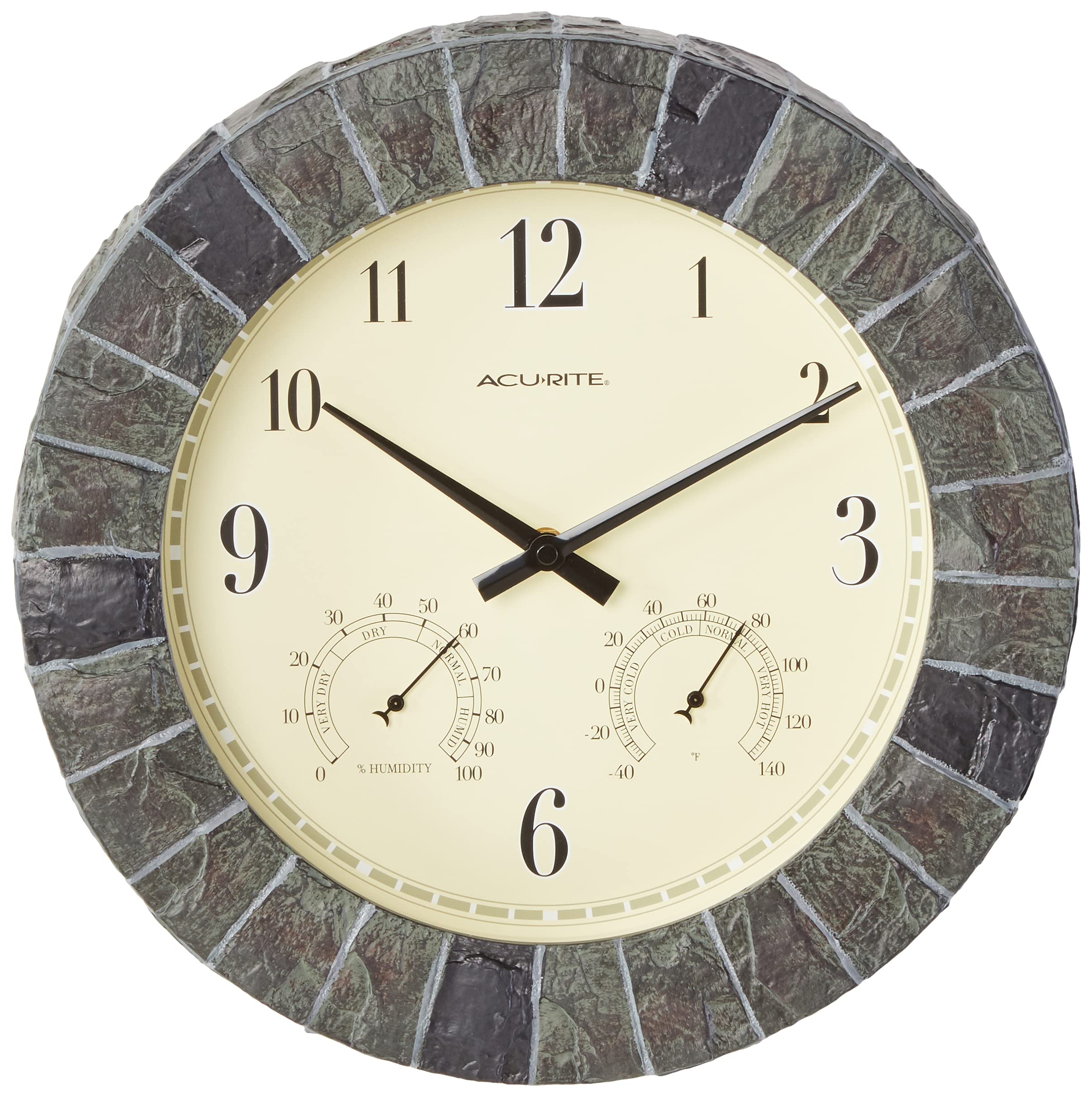 This wall clock features built-in temperature and humidity gauges that allow you to check comfort conditions at a glance. Durable stone replica construction resists the elements and makes this clock combination perfect for any room, patio or garden. It's more than accurate, it's AcuRite.Measures temperatures from -40º F to 140º F or -50º C to 50º C