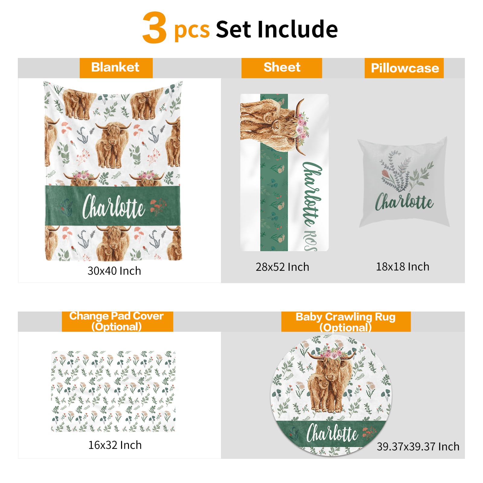 Complete Nursery Ensemble: Elevate your nursery decor with a comprehensive set featuring a fitted crib sheet, cuddly animal-inspired blanket, and charming pillowcase for a harmonized nursery atmosphere.