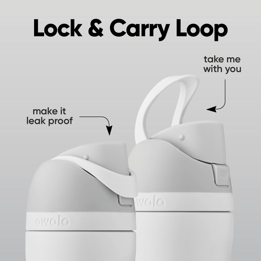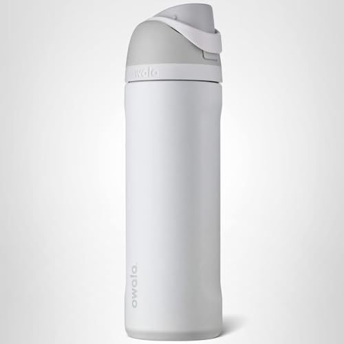 The Owala FreeSip Insulated Stainless-Steel Water Bottle with Locking Push-Button Lid easily tackles every thirst. With a built-in, easy-clean straw and a wide-mouth opening, the FreeSip reusable bottle is designed for drinking two different ways: sipping upright through the straw or tilting back to swig from the wide-mouth spout opening. Add in a push-to-open lid and playful colors, and staying hydrated has never been simpler—or more fun. Additional features include double-wall insulated stainless steel that keeps drinks cold up to 24 hours, a carry loop that doubles as a lock, and a wide opening for easy cleaning and adding ice. The Owala FreeSip Insulated Stainless-Steel Water Bottle with Locking Push-Button Lid is available in three sizes: 24-Ounce, 32-Ounce, and 40-Ounce. Lid is dishwasher safe; hand wash cup. Not for use with hot liquids. Manufacturer’s limited lifetime warranty.