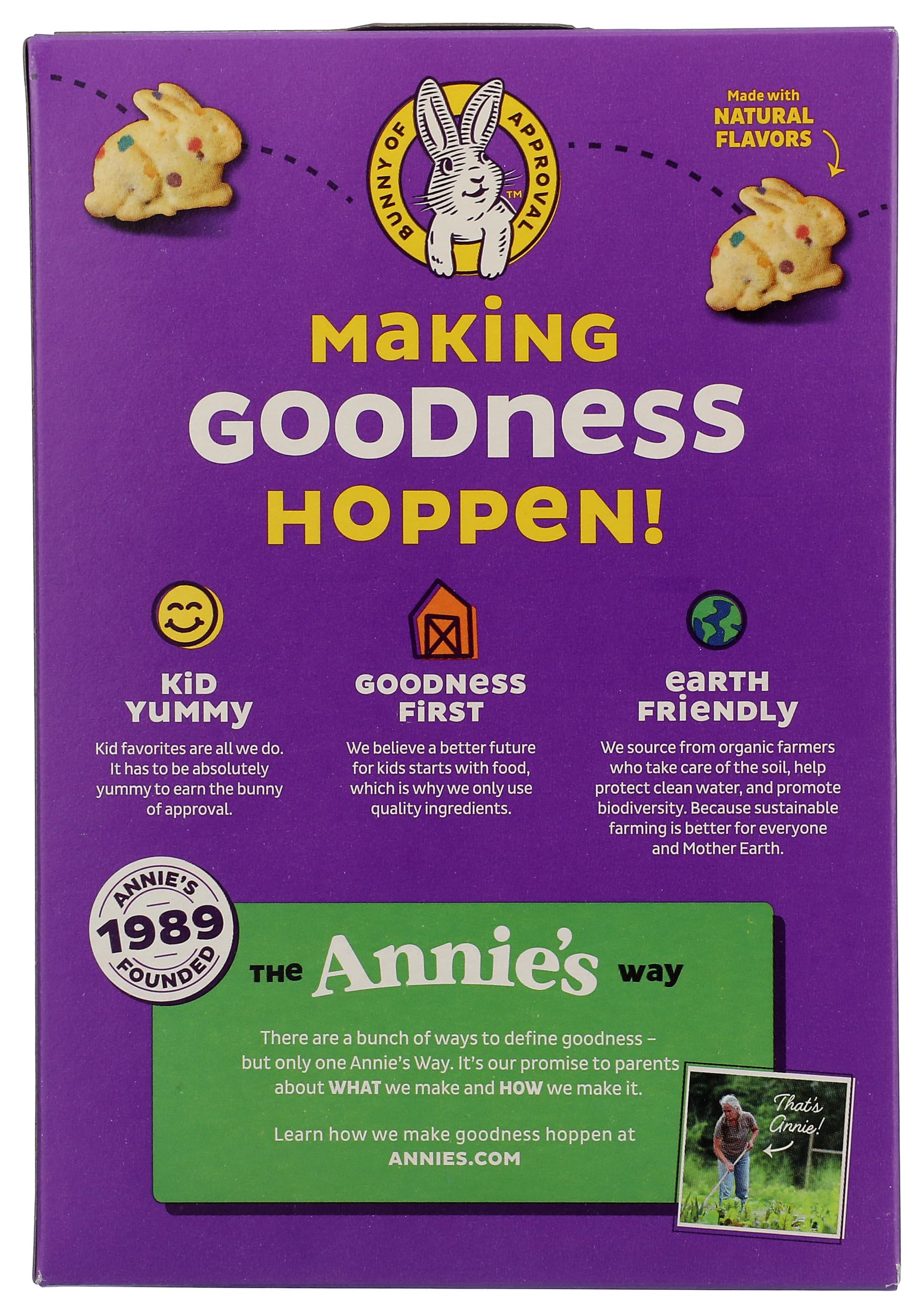 Annie's Organic Birthday Cake Bunny Grahams are crunchy, yummy snackity snacks crafted with goodness. Non-GMO and certified USDA Organic, these bunny shaped graham crackers make a tasty addition to lunches, travel snacks or after school treats for kids. They are great for sharing among their friends, and are the perfect size for both toddler hands and grownup handfuls. Plus, with no artificial flavors, synthetic colors, or high fructose corn syrup, these birthday cake flavored bunnies will make everybunny smile. Keep these treats on hand to bring joyful snacking and happiness to your family any day. Annie's makes products in over 20 family-friendly categories, from fruit-flavored snacks and cereal to mac and cheese. For busy bunnies and families on the go, we help make life a little easier and more delicious by spreading goodness through tasty foods and kindness to the planet.