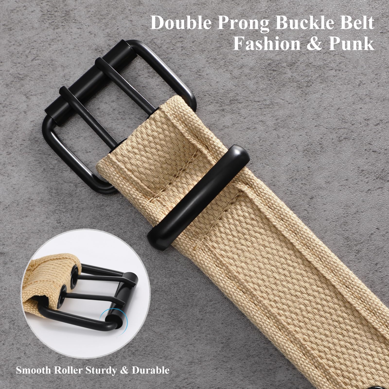 [Comfortable]: The double grommet belt is made of premium soft and breathable canvas to improve comfort and wear resistance. This double prong belt is βsturdyβ and will not easily crack or break after long-term use.