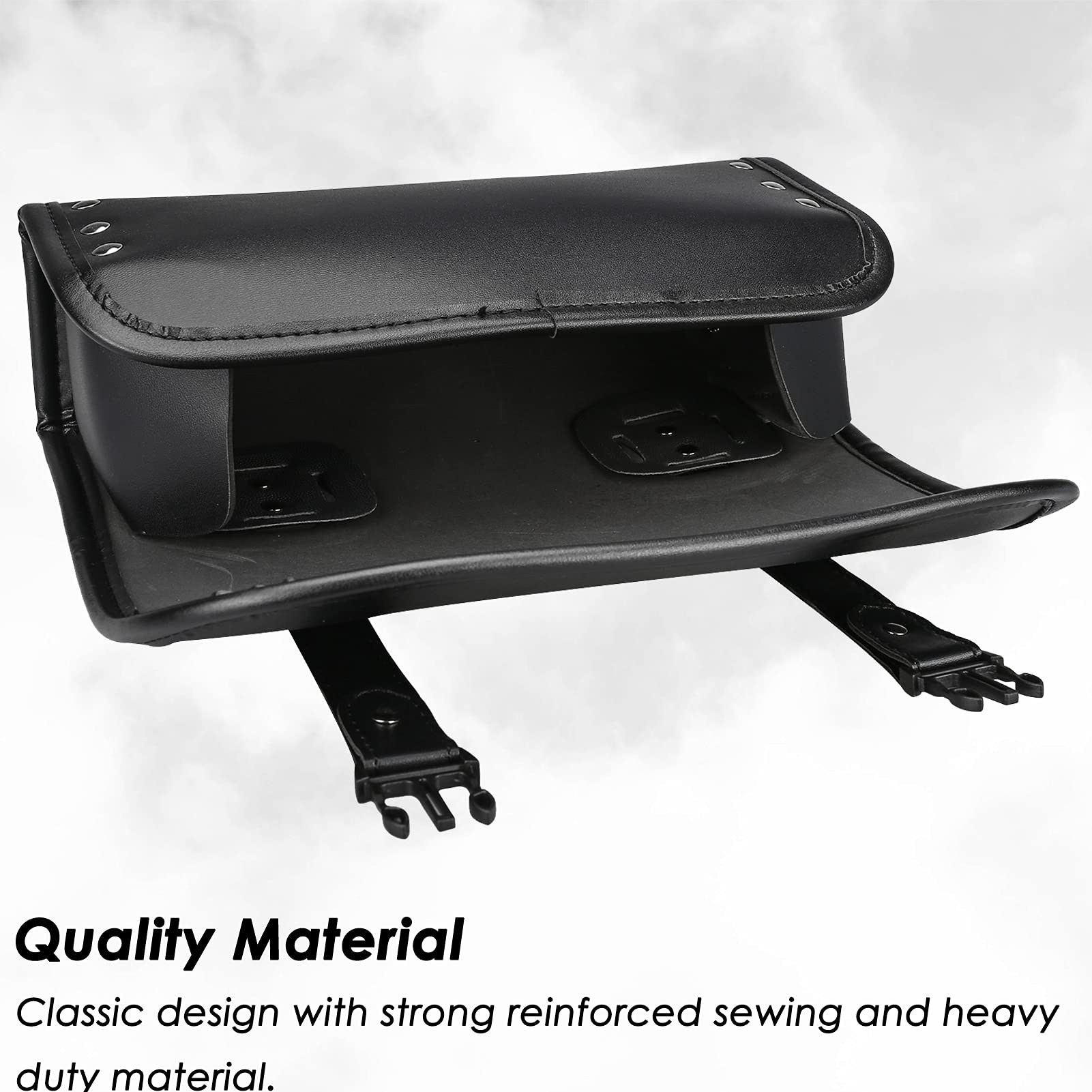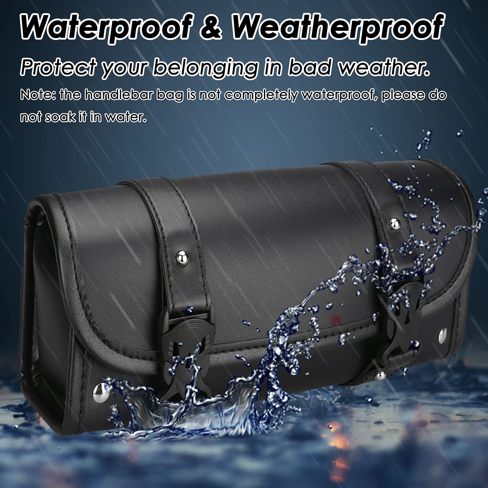 DURABLE MATERIAL: The motorcycle handlebar bag is constructed of PU leather with rivet, handmade sewing, and moderate thickness to keep the bag shapely. Because our bags are hand-stitched, there will be some unevenness around the edges