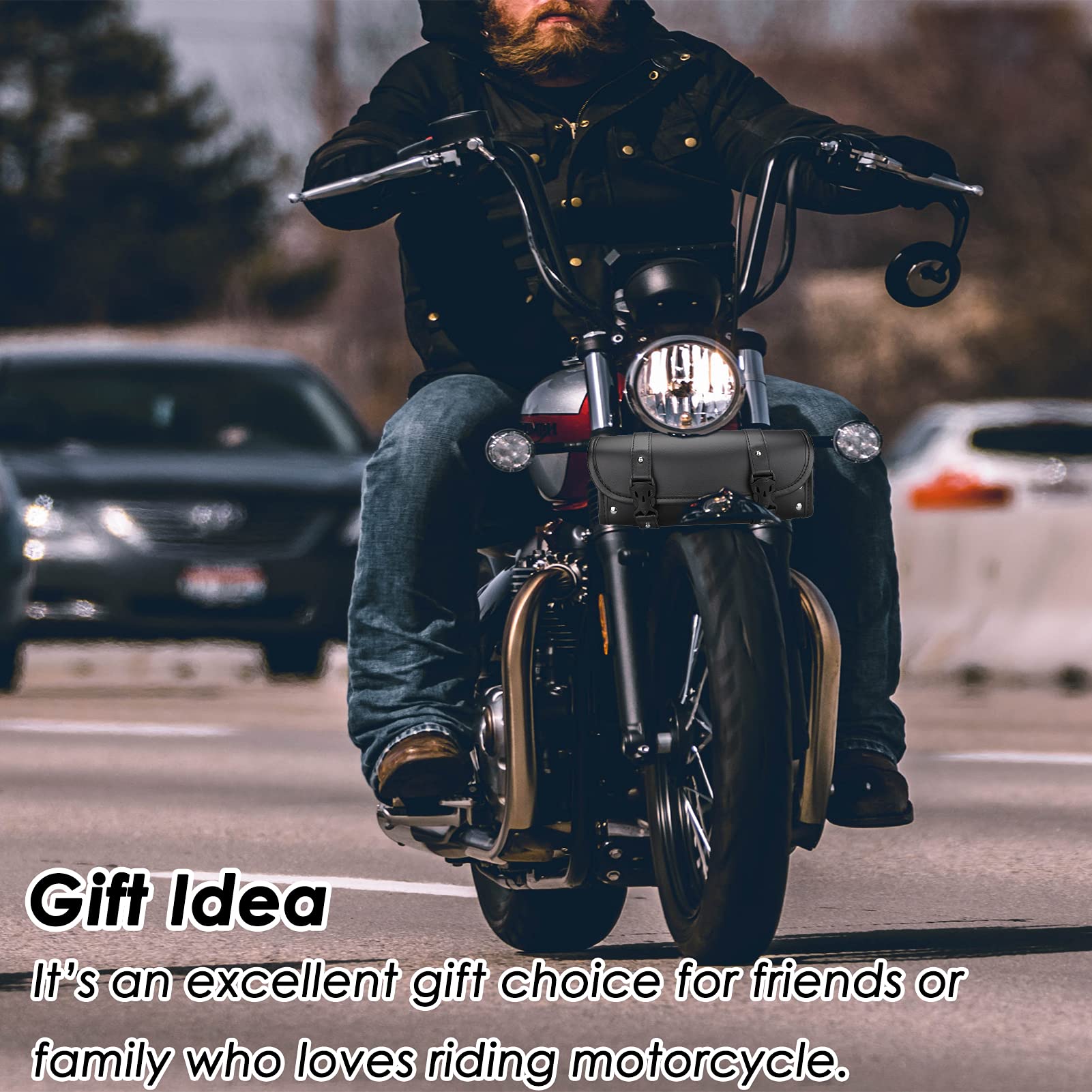 PACKAGE INCLUDED: Including 1 x motorcycle fork bag (11.8" x 3.5" x 5.1"), and 2 x adjustable straps (approx. 10.6''). Suitable for most of motorcycle models, adds a more stylish and modern feeling to your motorcycle. Please check the size before purchasing