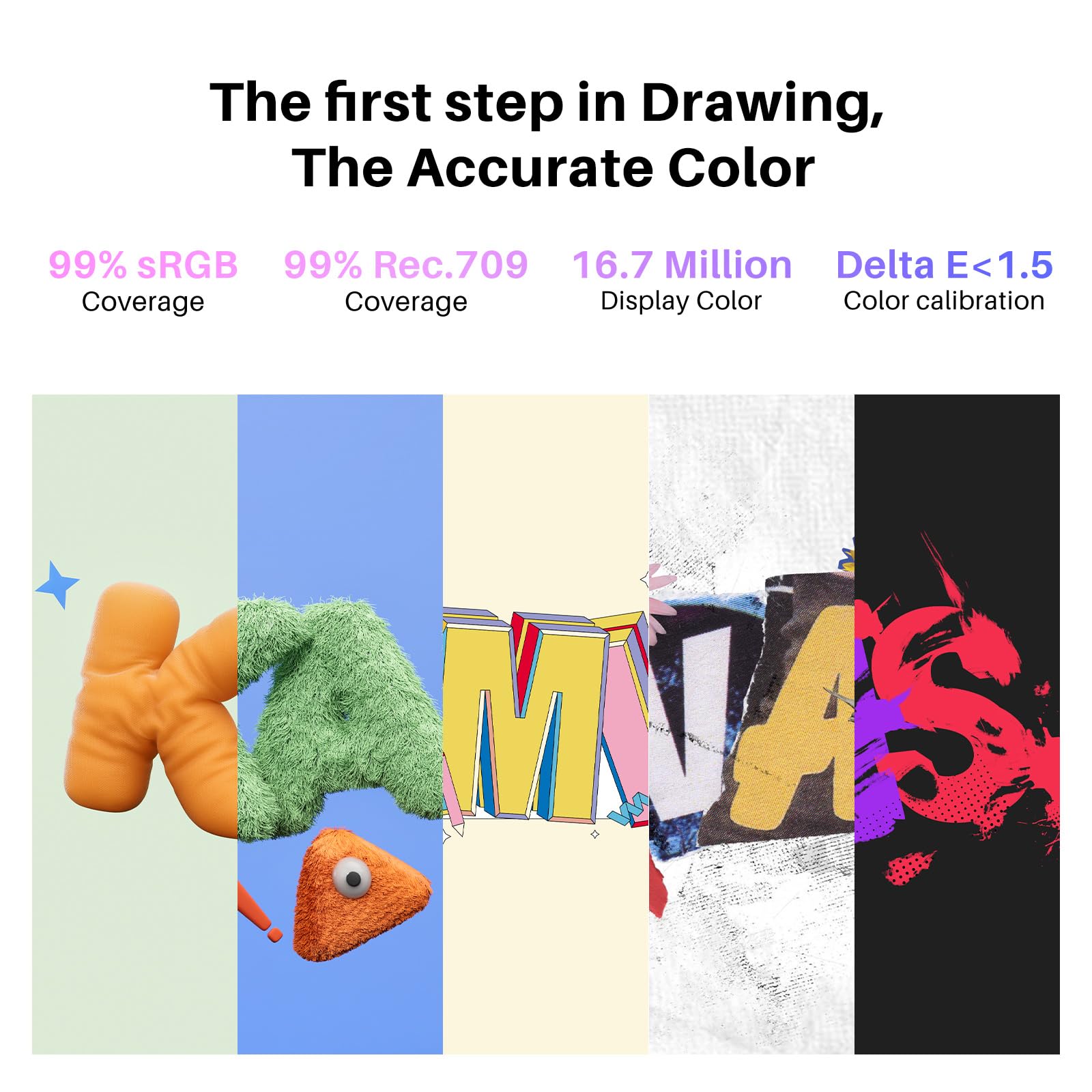 Improved Color Accuracy: With enhanced color accuracy to Avg. ΔE<1.5, 16.7 million display colors, 99% sRGB coverage, and Rec.709 standard color gamuts, HUION Kamvas 13 (Gen 3) digital art tablet delivers stunning visuals.