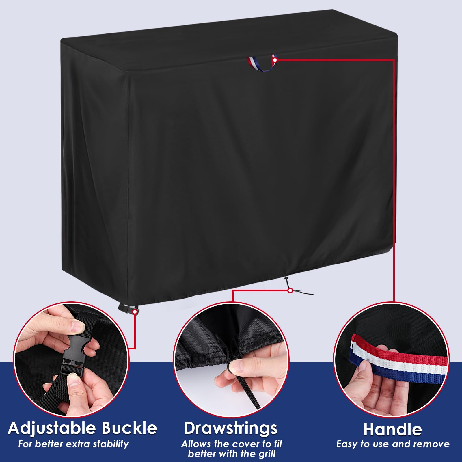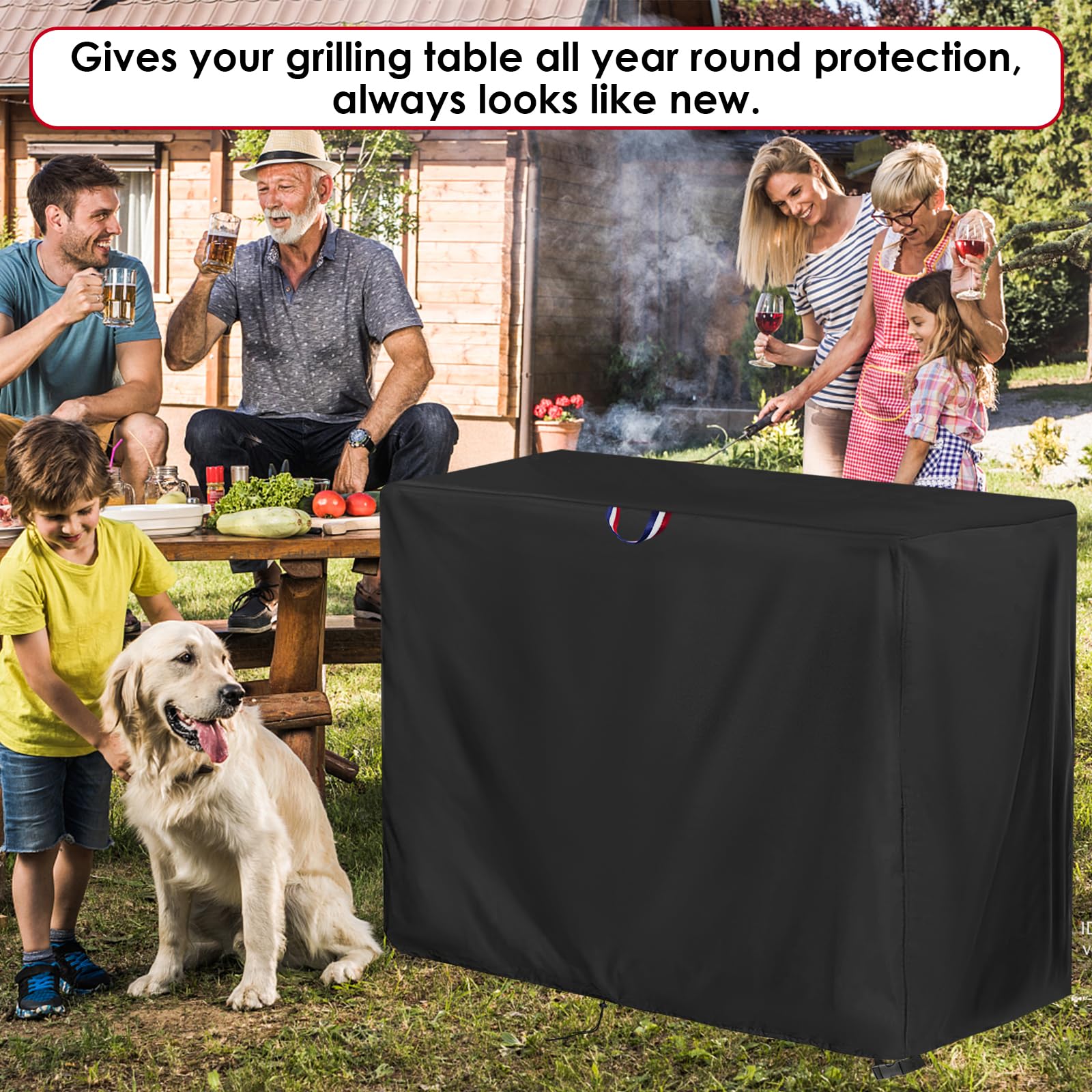 Upgrade Durable Material - This grill cover is made of Heavy duty oxford polyester with water resistant PVC coating, resists UV, tearing and cold cracking, durable and long-lasting. Gives your grilling table all year round protection, always looks like new.