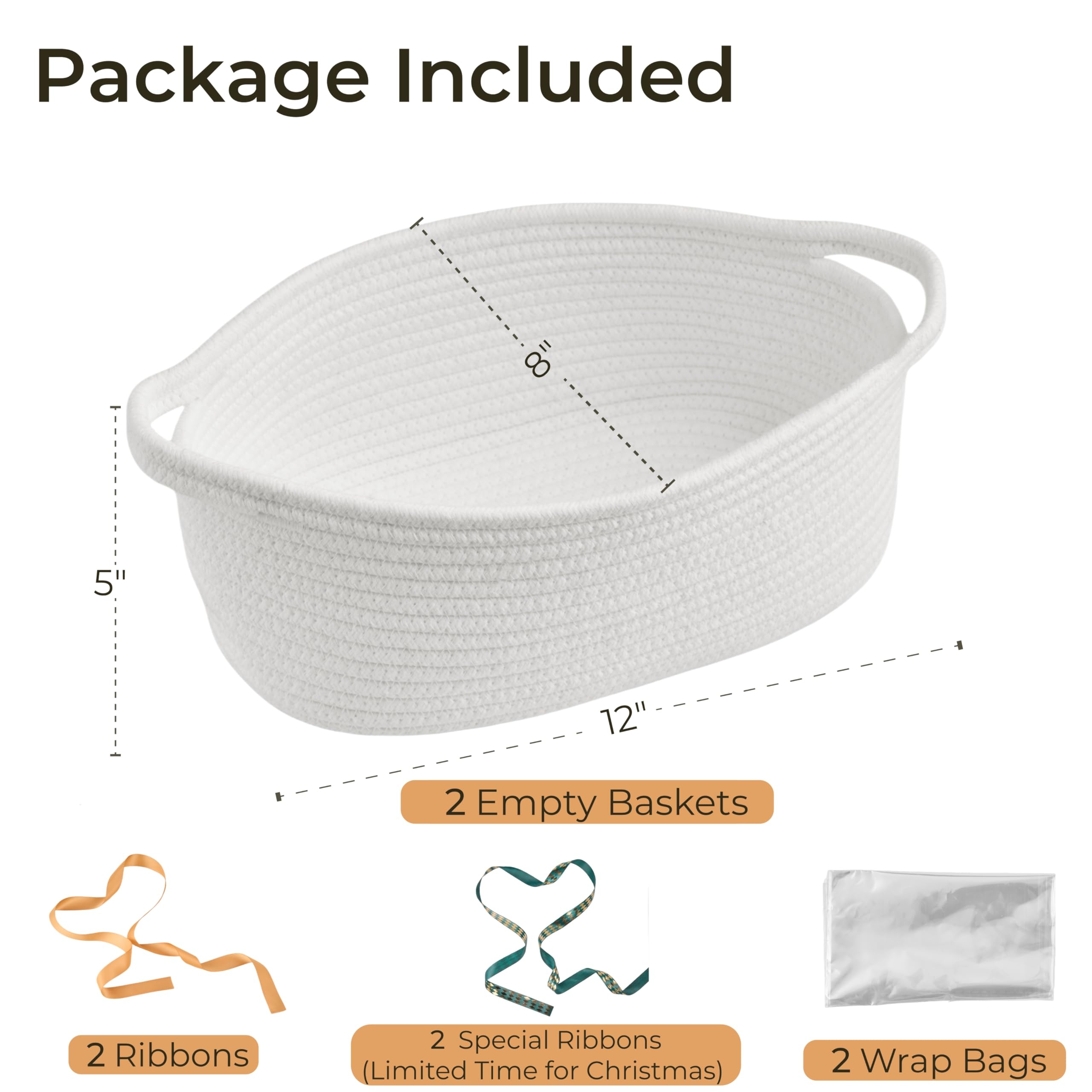 Complete Gift Wrapping Sets: Include 2 empty woven baskets, 2 wrap bags, and 2 ribbons; perfect for creating beautiful and personalized gift presentations