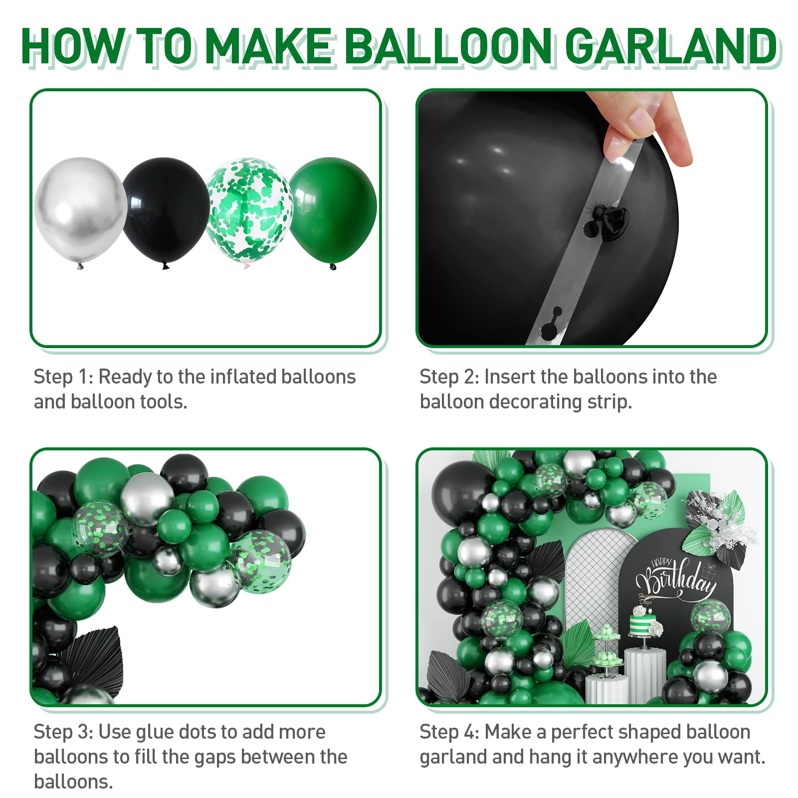 Package Included:51pcs black balloons(5+10+18""),36pcs green balloons(5+10""),10pcs metallic silver balloons(5+10""),5pcs green confetti balloons(12""),glue points,balloon strip tape,ribbon