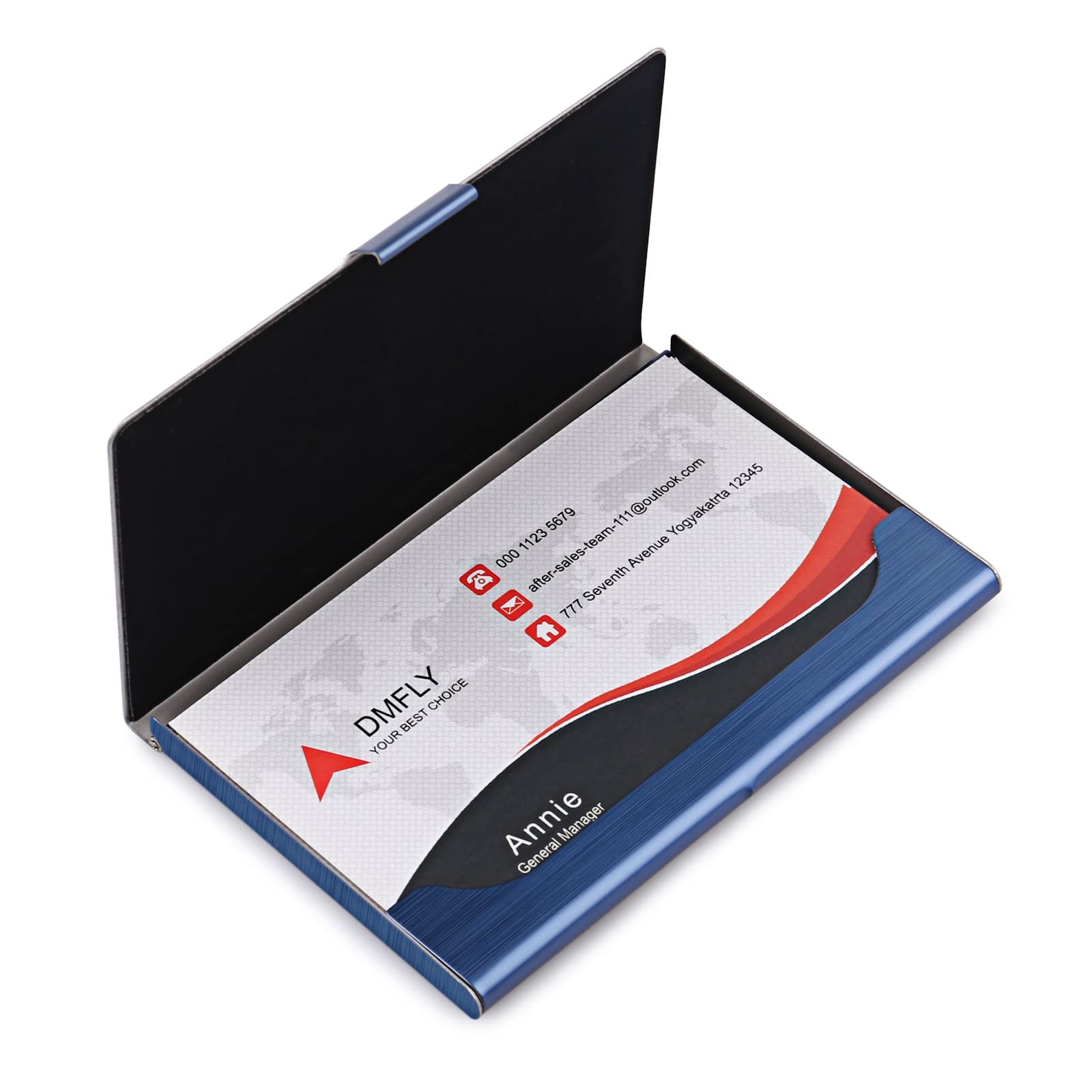 DMFLY business card holder, make your business success. > > > Our slim business card holder, can hold up to 20 business cards, also for a few thick card stock- depending on your card thickness. Pocket size, easy to carry. > > > Buckle Style Shut, easy to take out the business cards when you meet with a customer. Let hard to take out cards issue get away from you. > > > Our card holder not only for business card, also for credit cards, note cards and personal cards, etc. > > > Fashionable and useful, our card wallet boasts an elegant design that is smooth and elegant. > > > High-quality stainless steel, sturdy and use longer, keep the card safe. Perfect purse size and classy looking --- Highly rated from customers.