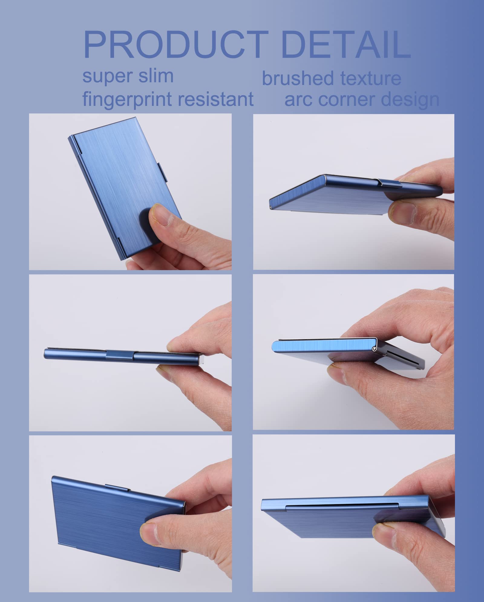 METAL CARD CASE: Our blue business card holder is made of HIGH-QUALITY stainless steel, the lid and the base are all metal, compare with other plastic cases, this card holder is enough solid. Perfect for long-time use. The smooth surface and business appearance look more professional, which will help you to leave a nice first impression on your important clients, associates or entrepreneurs.
