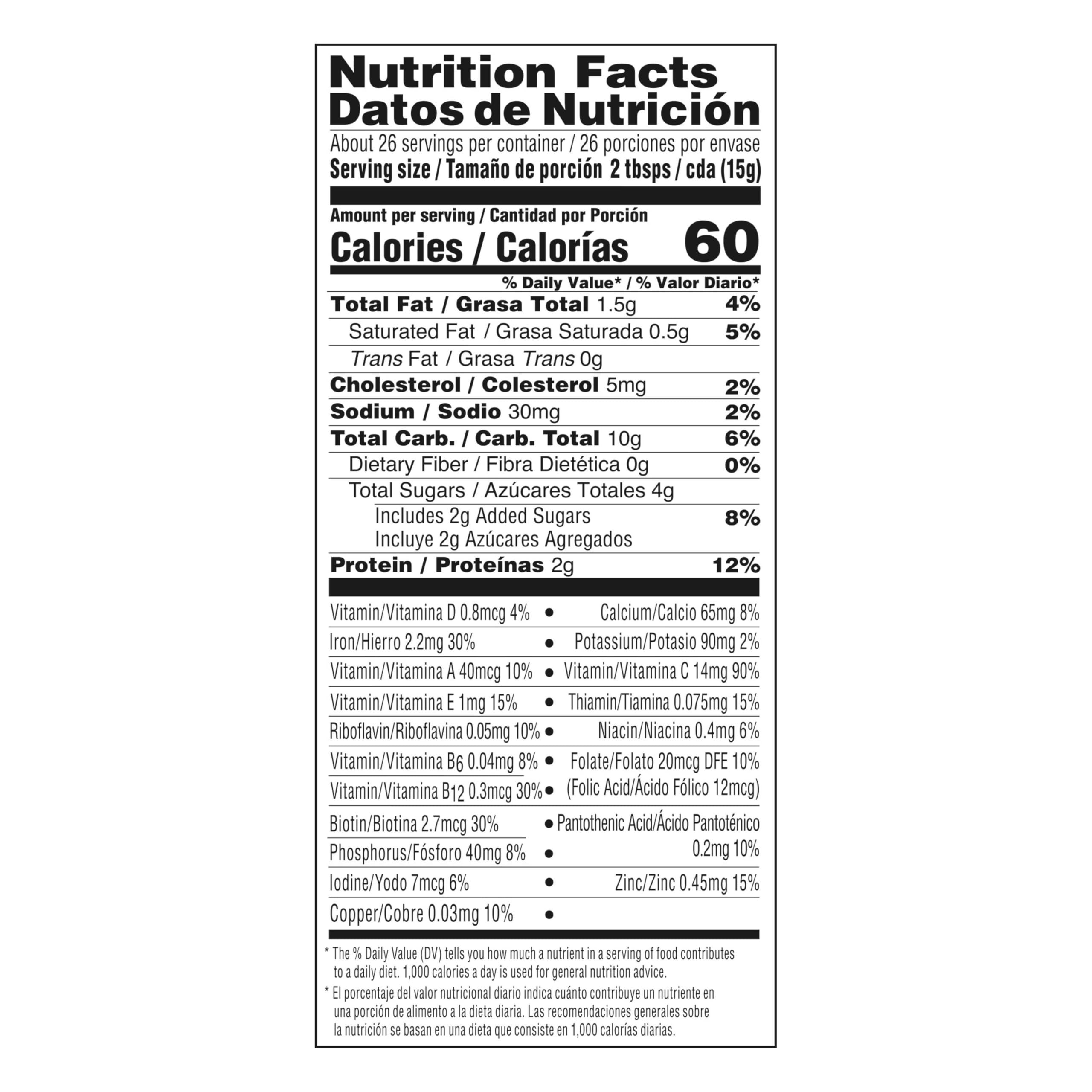 2 servings a day provides 60% daily value iron to help support normal cognitive development