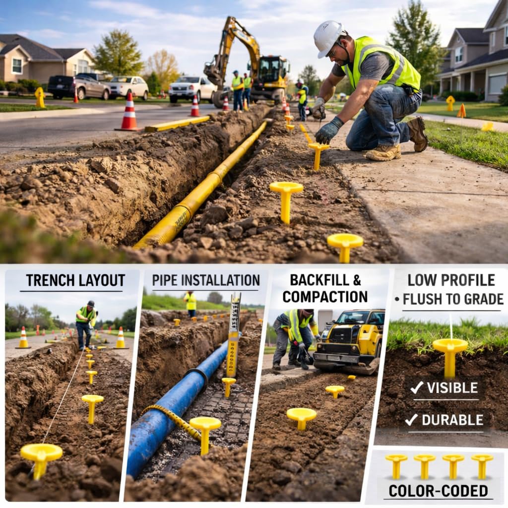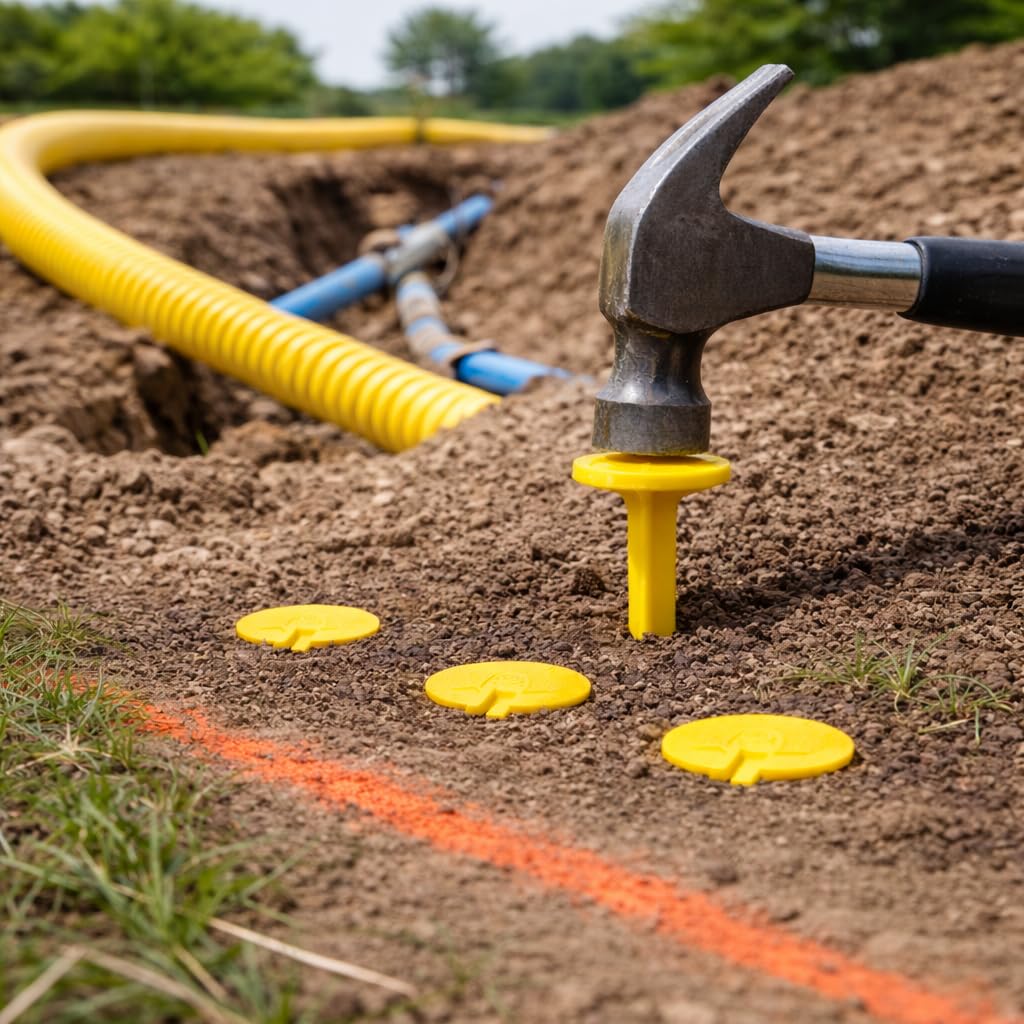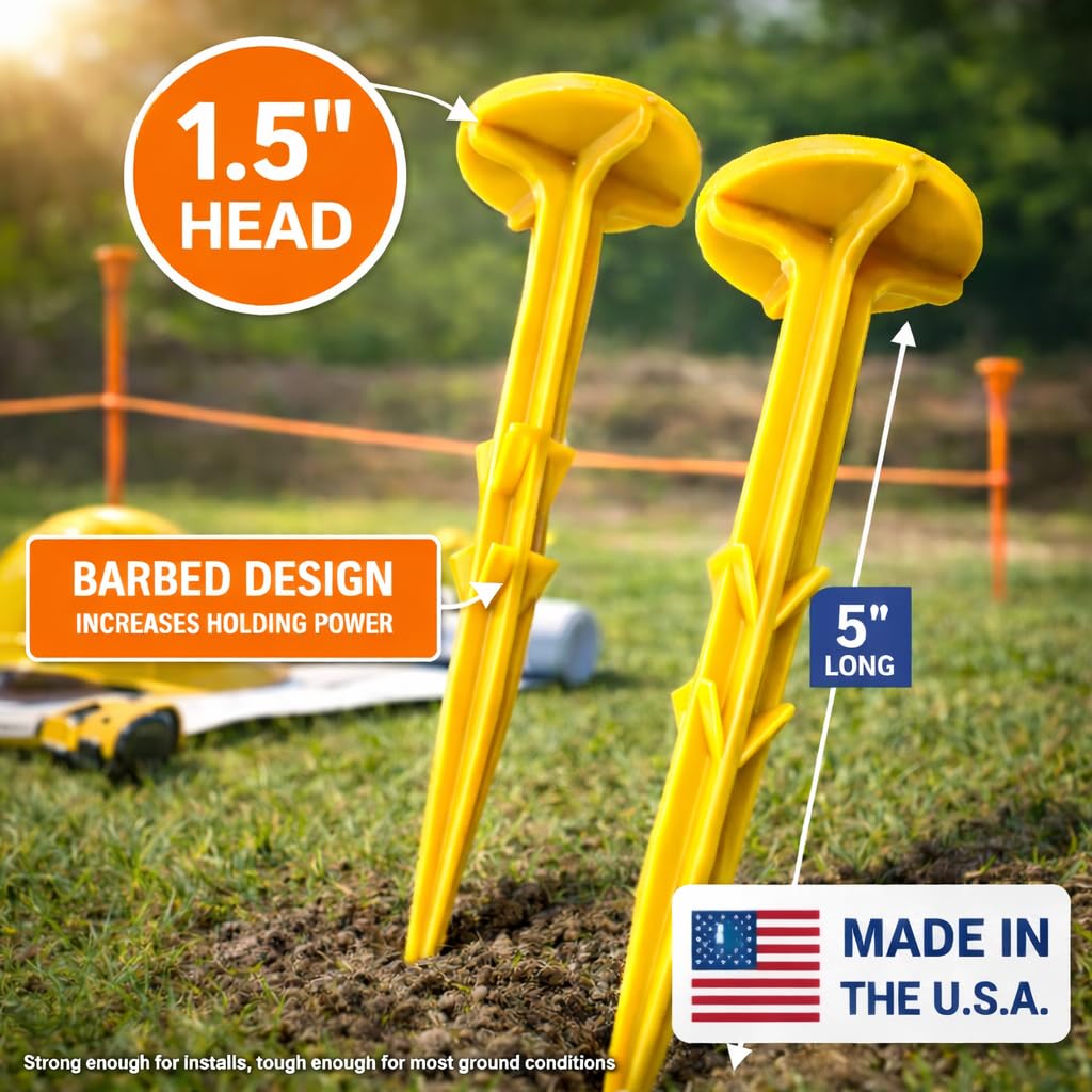 Permanently marks your property boundary without an obtrusive stake or structure. Installs flush with ground so you can easily mow, walk, play or drive right over them. Easy to locate but not obtrusively noticeable to neighbors or someone passing by. Most property corners are marked with rebar, pipe or monuments often buried several inches under the ground. These Made in U.S.A. pins/markers are approx. 5” long and have 1.5” diameter heads that can be driven down until they sit flush with the ground. These survey markers allow you to easily mow, walk and drive over them to maintain your property, yet still allow you to easily re-locate them. They provide a convenient way for you to re-locate your survey markers when needed without a surveyor and a shovel! People walking and riding by your property will not even notice them, but you will know where they are when it’s time to install a fence, plant a hedge or when you just want to know where your property corners are located. You can let your grass grow over them so they are not readily visible, yet be able to re-locate them with little effort. Everyone should know where their property boundaries are but no one wants to be “that guy” who keeps stakes, pipes or rocks at their property corners claiming their territory for all the neighbors to see.