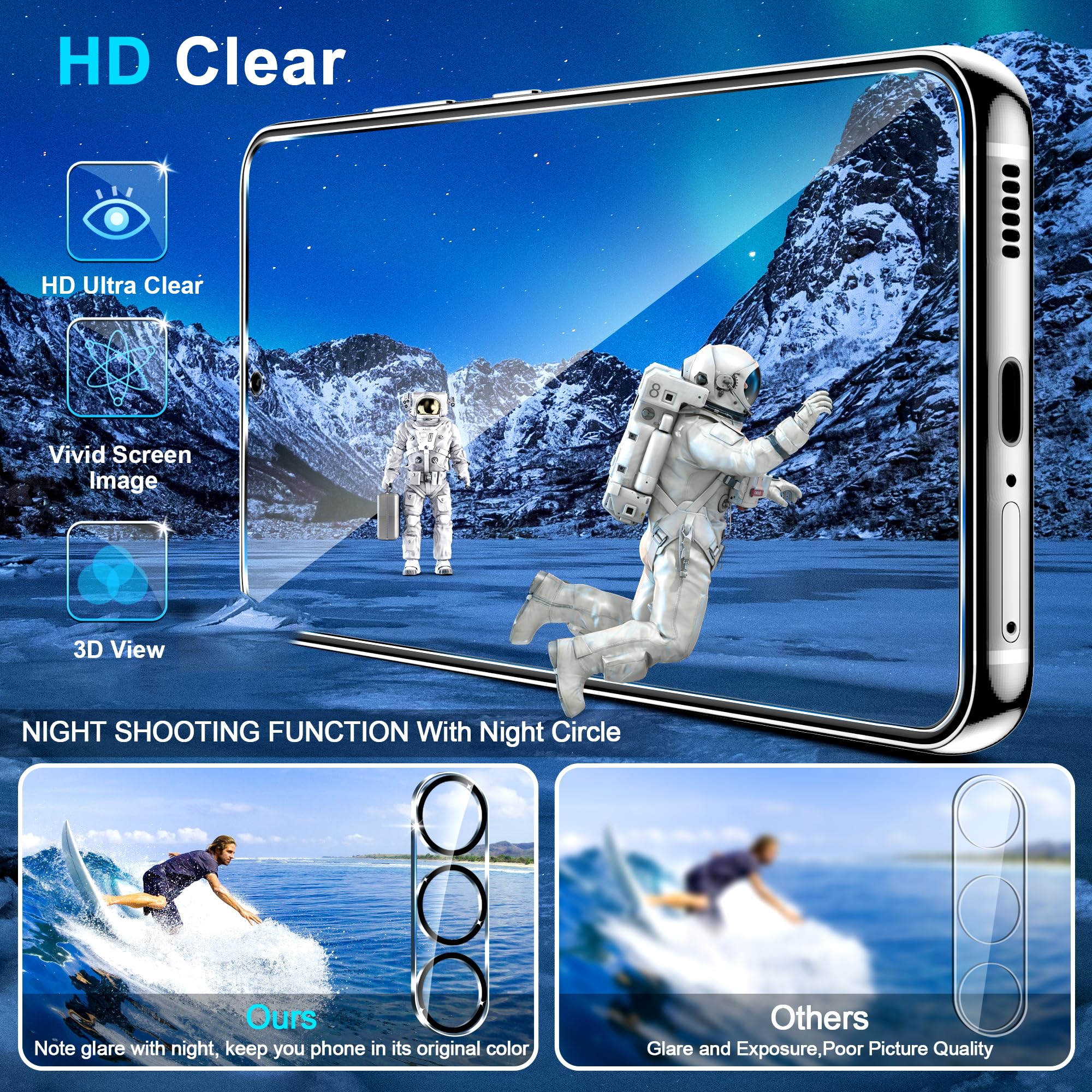 Night shooting made easy: This camera lens protective film is custom designed for the Galaxy S24 FE 6.7Inch display. It seamlessly integrates augmented reality technology for improved light transmittance and night shooting capabilities. this protector restores the original quality of photos and videos even when using the flash at night.Transparent lens film keeps your phone and phone photos' original color all the time