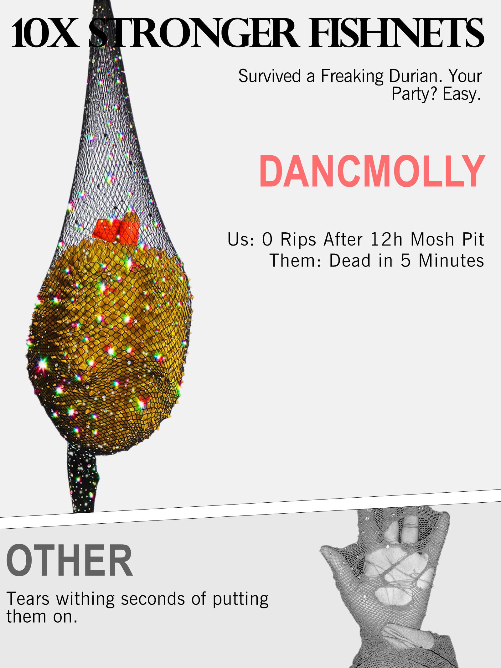[GLAM THAT KEEPS UP] From daytime poolside dazzle to midnight champagne toasts, these adapt without fuss. Hand wash cold, air dry—they’re built to survive festival chaos and bar-hopping marathons. While no fishnets last forever, ours handle more adventures than basic nets. Just avoid sharp edges and let them fuel your wildest nights.