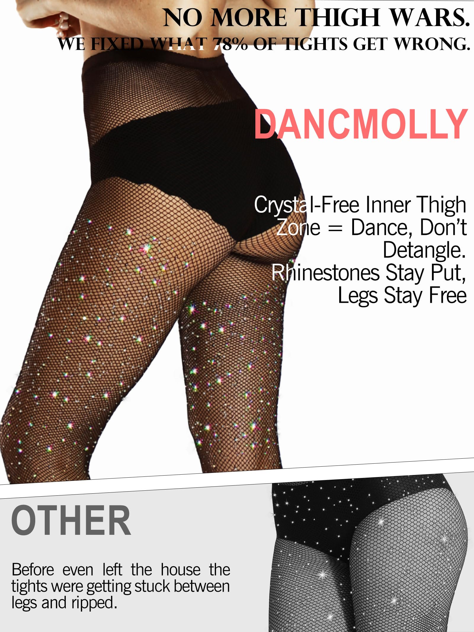 [FRICTION-FREE SEAMS | No Inner-Thigh Drama] Redesigned based on 78% of rips starting at inner thighs: crystal-free zones eliminate snagging during line dances or bar crawls. Flat-knit edges prevent chafing, while the elastic waistband (no silicone) stays put from size M to 4XL—no muffin top, no gaping.