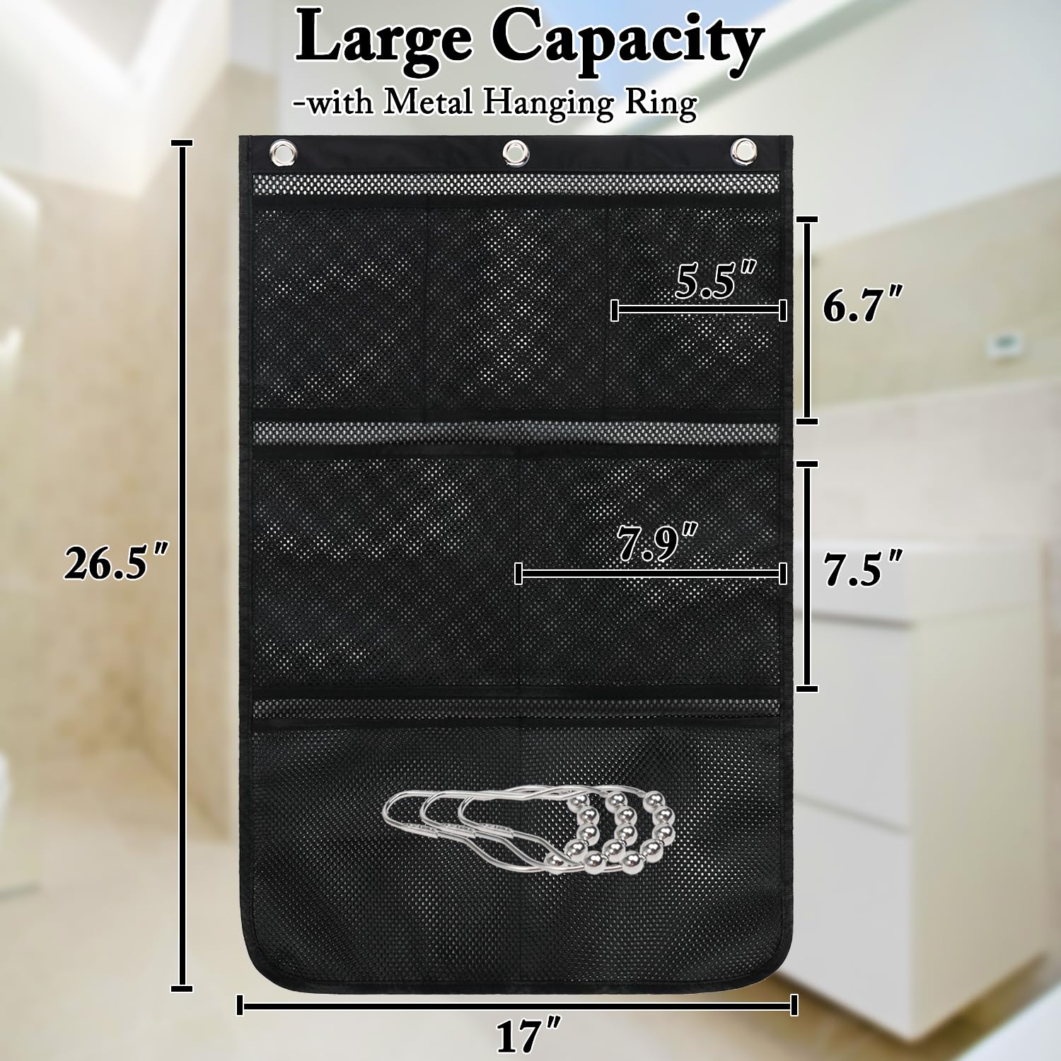 ใ๐๐๐ซ๐ ๐ ๐๐๐ซ๐ญ๐ข๐๐๐ฅ ๐๐ญ๐จ๐ซ๐๐ ๐ใMeasures 17" x 26.5", providing ample vertical storage space to keep your shower essentials neatly organized and off the floor or countertop.
