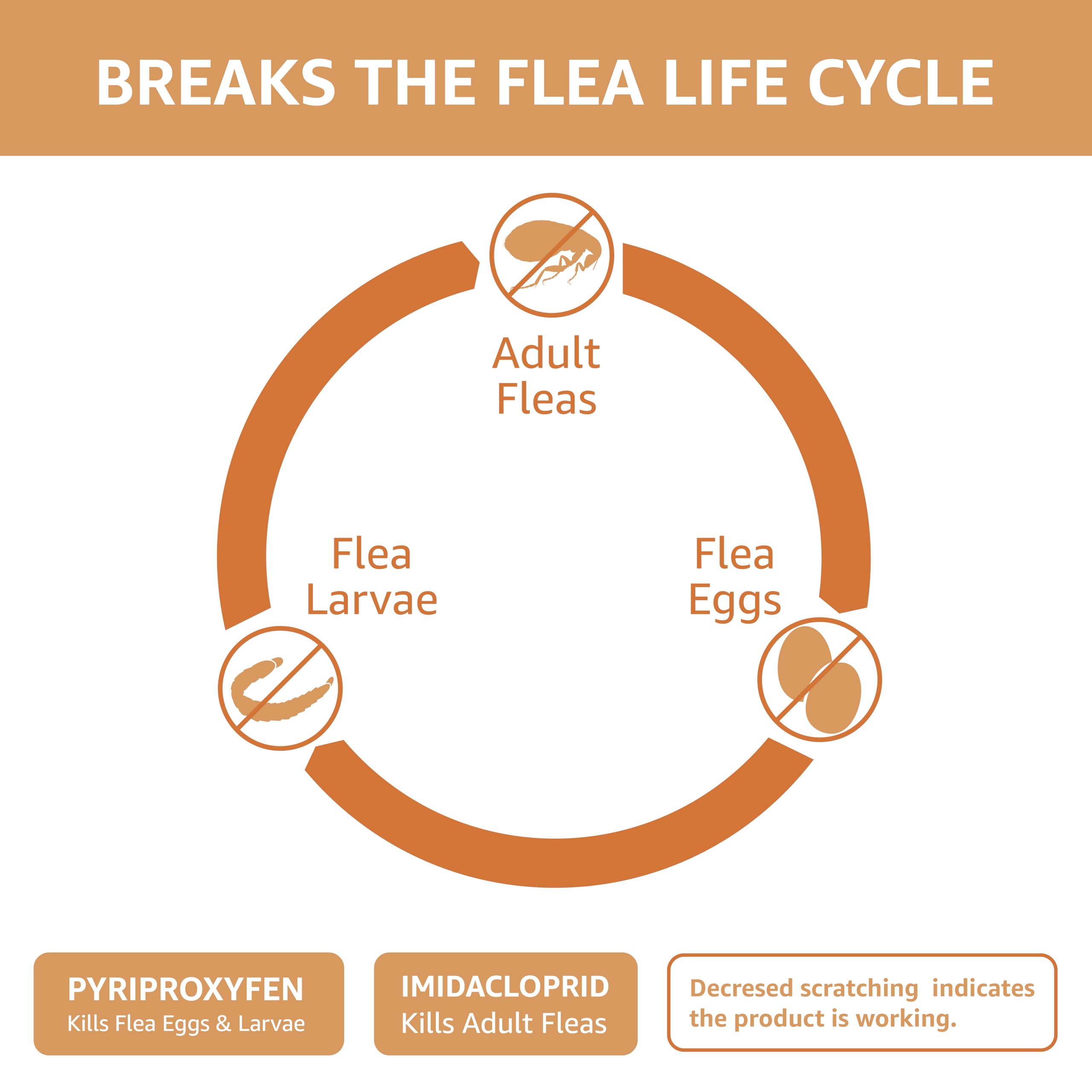 Active ingredients (Imidacloprid & Pyriproxyfen) treats flea infestations by killing fleas, flea eggs & flea larvae