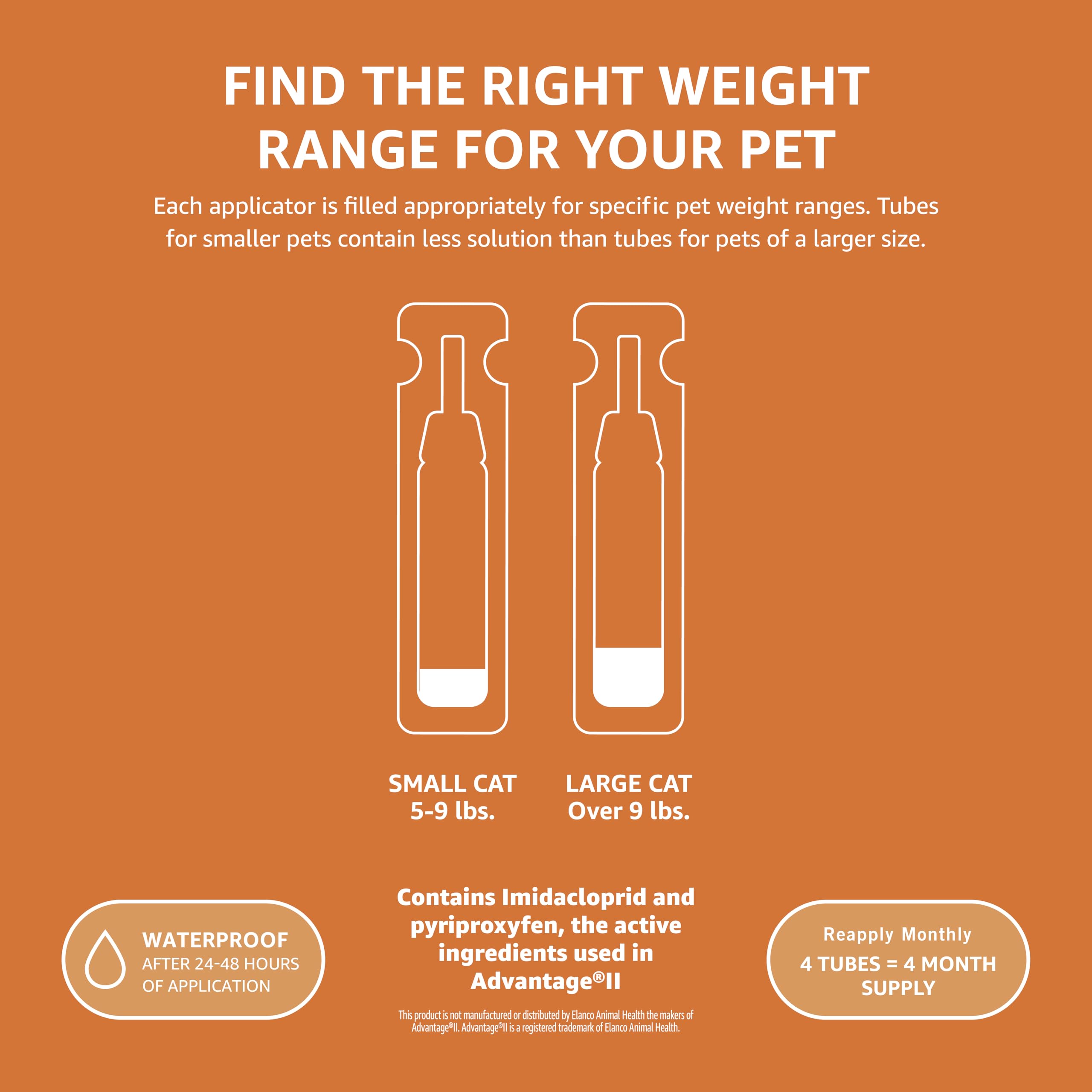 Product Description Amazon Basics Flea Topical for large cats (over 9 pounds). Only for Cats and Kittens 8 weeks or older and over 9 lbs. From the Manufacturer Amazon Basics