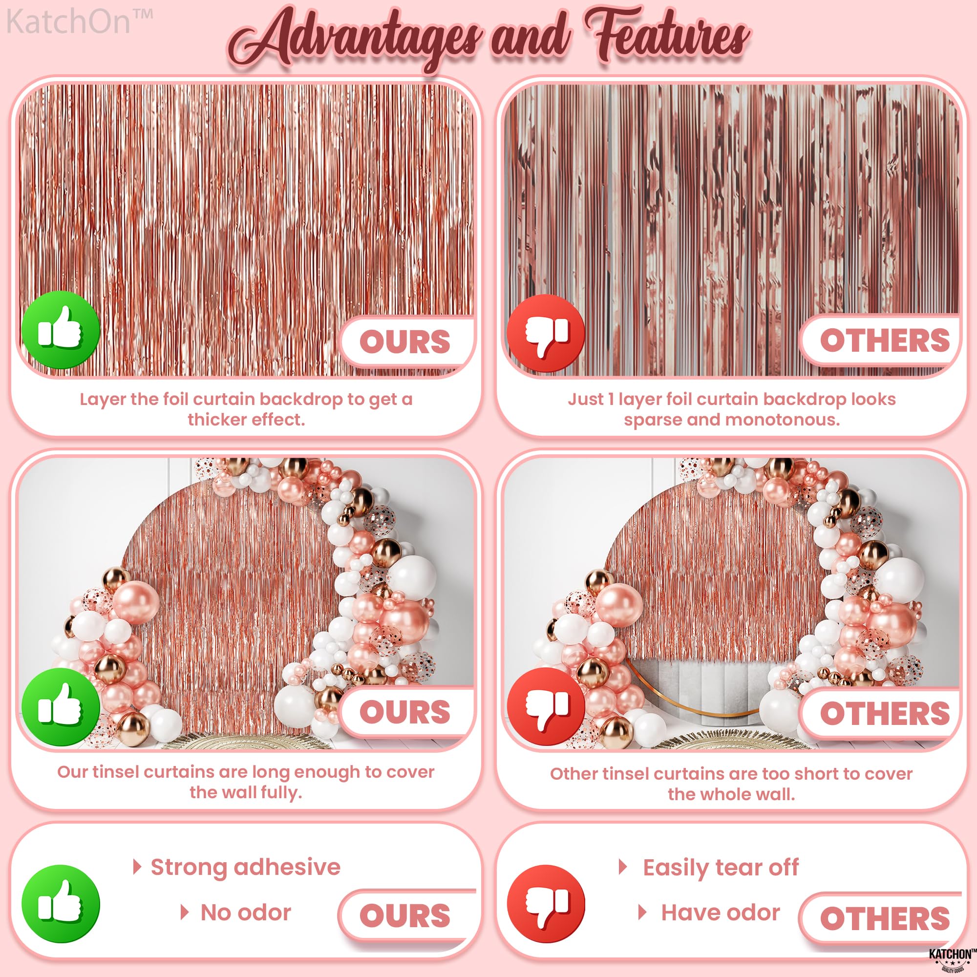 MAKE A CONFIDENT CHOICE | WE STAND BY YOUR SATISFACTION: Customer satisfaction is our main objective, so we personally made sure that the materials we used for this foil fringe curtains rose gold decorations are Grade A Quality. If you are not satisfied with our rose gold photo backdrop or bachelorette backdrops for bachelorette decorations, then we are here to assist you. Use this rose gold backdrop curtain for rose gold graduation decorations 2025, prom 2025.