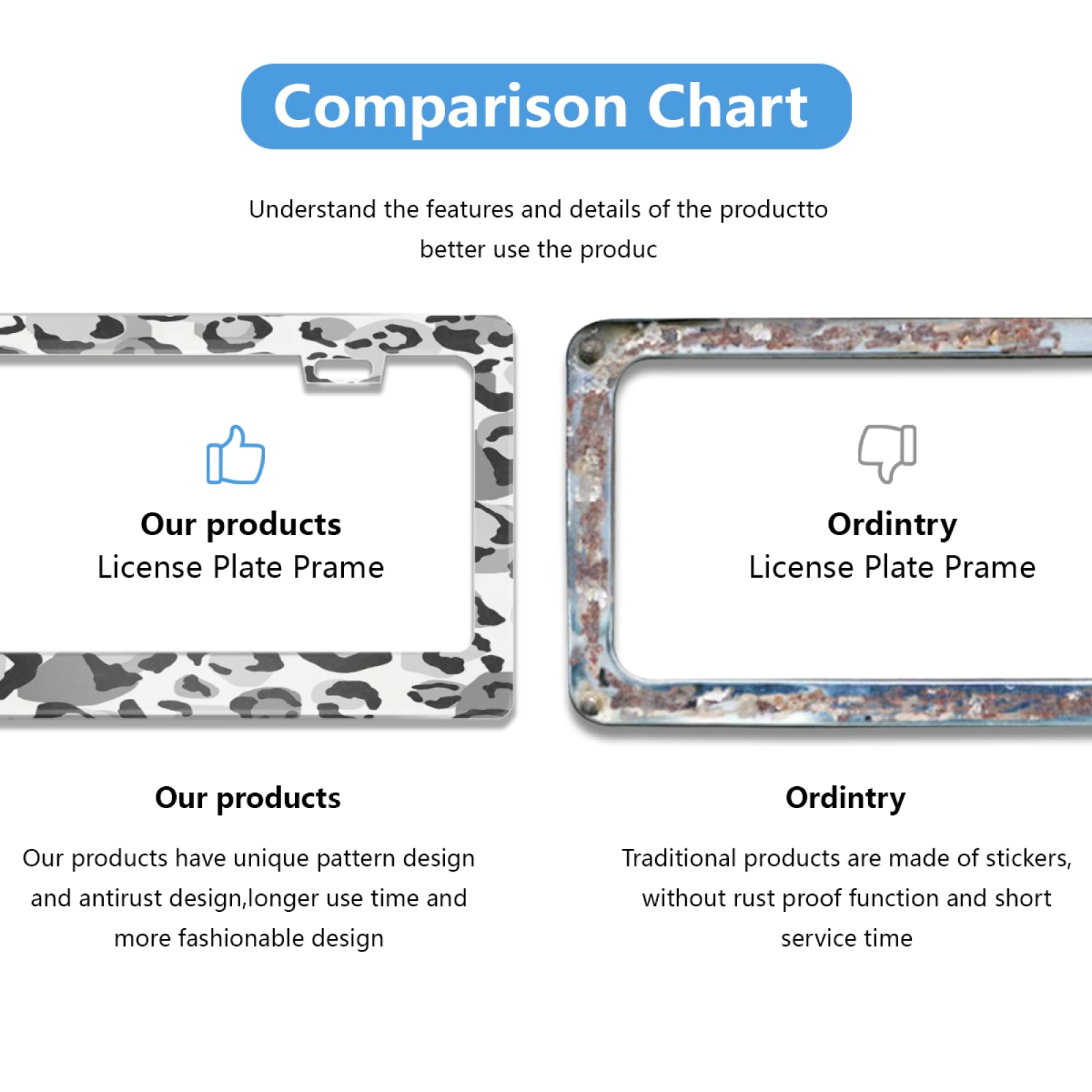 【Standard License Plate Size】:Our license plate frame size is 12.2 x 6.3 inches. This license plate frame will fit most of the standard license plates in the United States and Canada, and perfectly match your car license plate accessories.