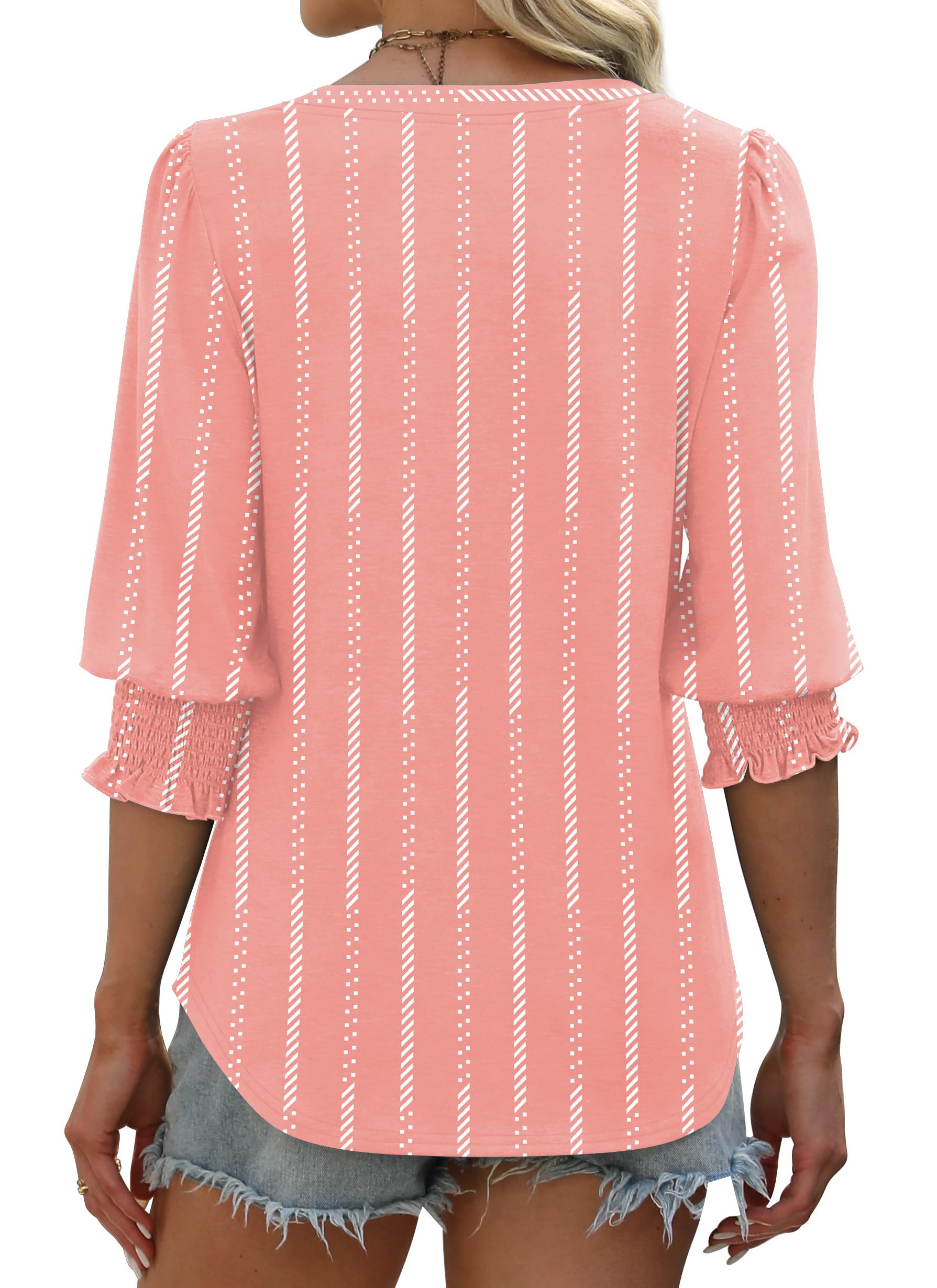 ♥Material: XIEERDUO 3/4 Smocked Sleeve Top is skin-friendly, comfortable and lightweight for everyday wear. The solid tops are made of 60%Polyester,35%Rayon,5%Spandex. The pattern tops are made of 95%Polyester,5%Spandex.