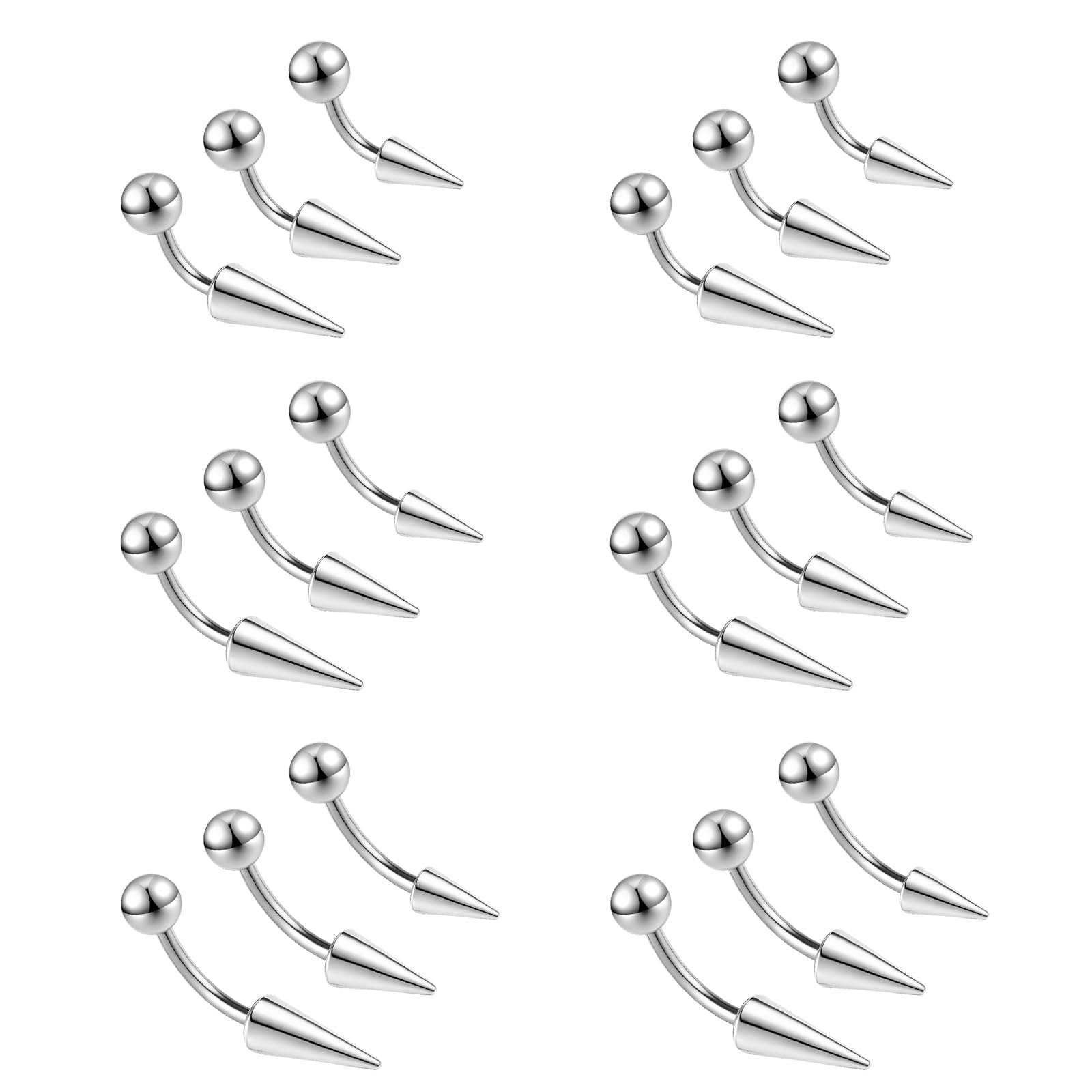 ❀Spike Eyebrow Piercing Size——Spike ecurved barbell piercing jewelry gauge: 16g(1.2mm); Rook jewelry bar length: 6/8/10mm. Lip jewelry Ball/ Cone Size: 3/6/8/10mm. Be careful the spike lip piercing long cone when using.