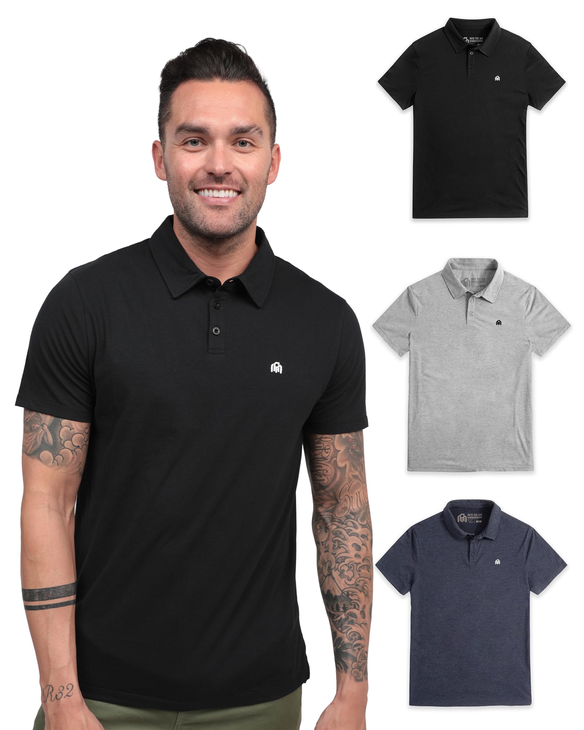 Description PERFECT FIT: These mens polo shirts feature a slim fit that highlights your arms and chest with a flattering drape for your midsection. ULTRA-SOFT: Our polos for men feature a light, stretchy, and soft poly cotton blend. LIGHTWEIGHT: Our mens polo shirt is lightweight and breathable for all-day comfort. STYLISH LOOK: These short sleeve polos are perfect for business casual wear, work events, golfing, and dressing up. GIFT FOR HIM: Give the perfect gift for your special person. This mens polo will have them looking sharp and full of confidence.