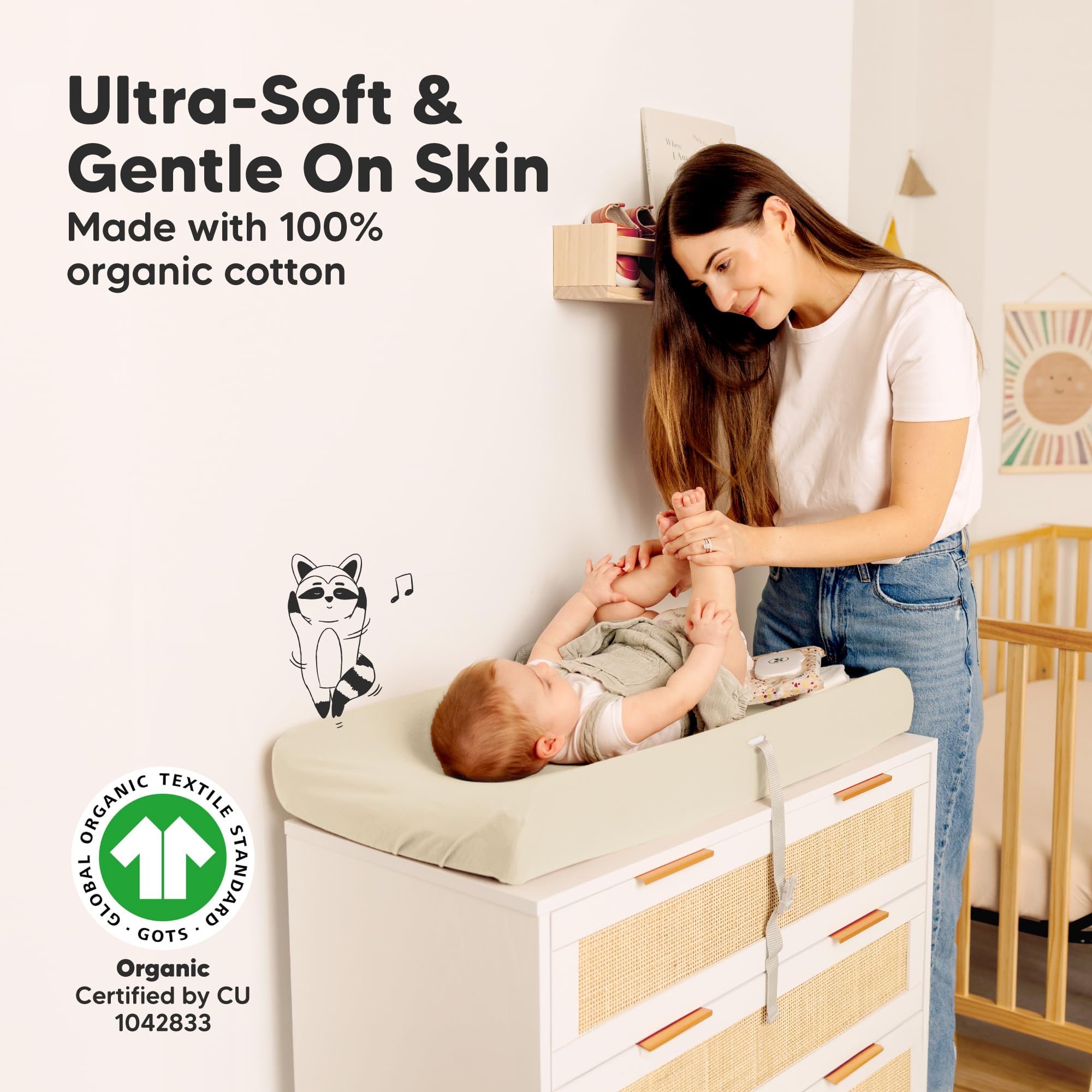 Ultra Softness - Made from 100% organic cotton (GOTS-Certified CU 1042833), our Soothe Changing Pad Covers are softer than muslin, more breathable, & gentle on baby’s skin, providing a soothing experience on the changing table during diaper changes.