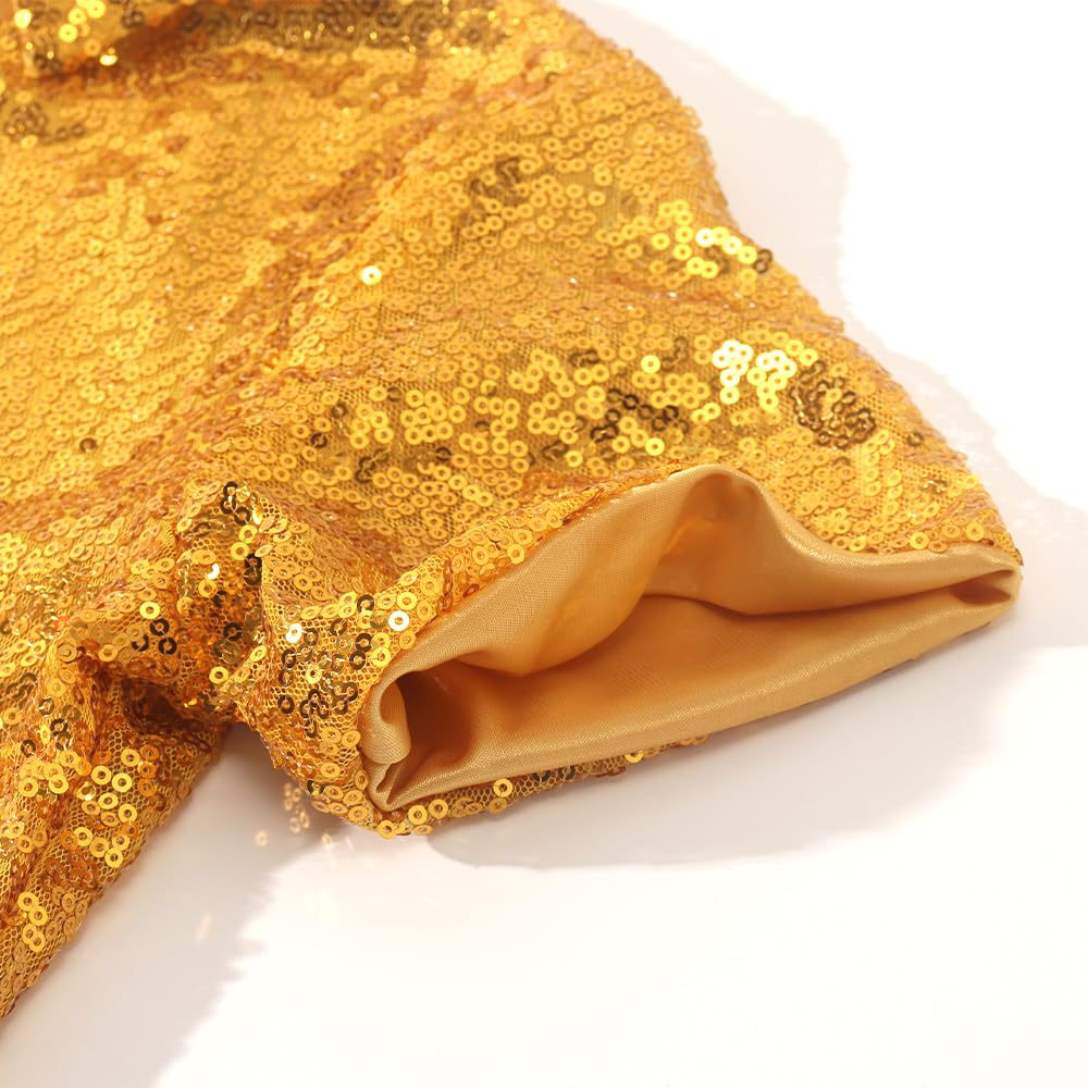 Sparkly sequin tops with V-neck, turn-down collar, fully sequined decoration makes shining and shimmering in the light or sunlight, inside soft satin lining to protect children's skin from scratches