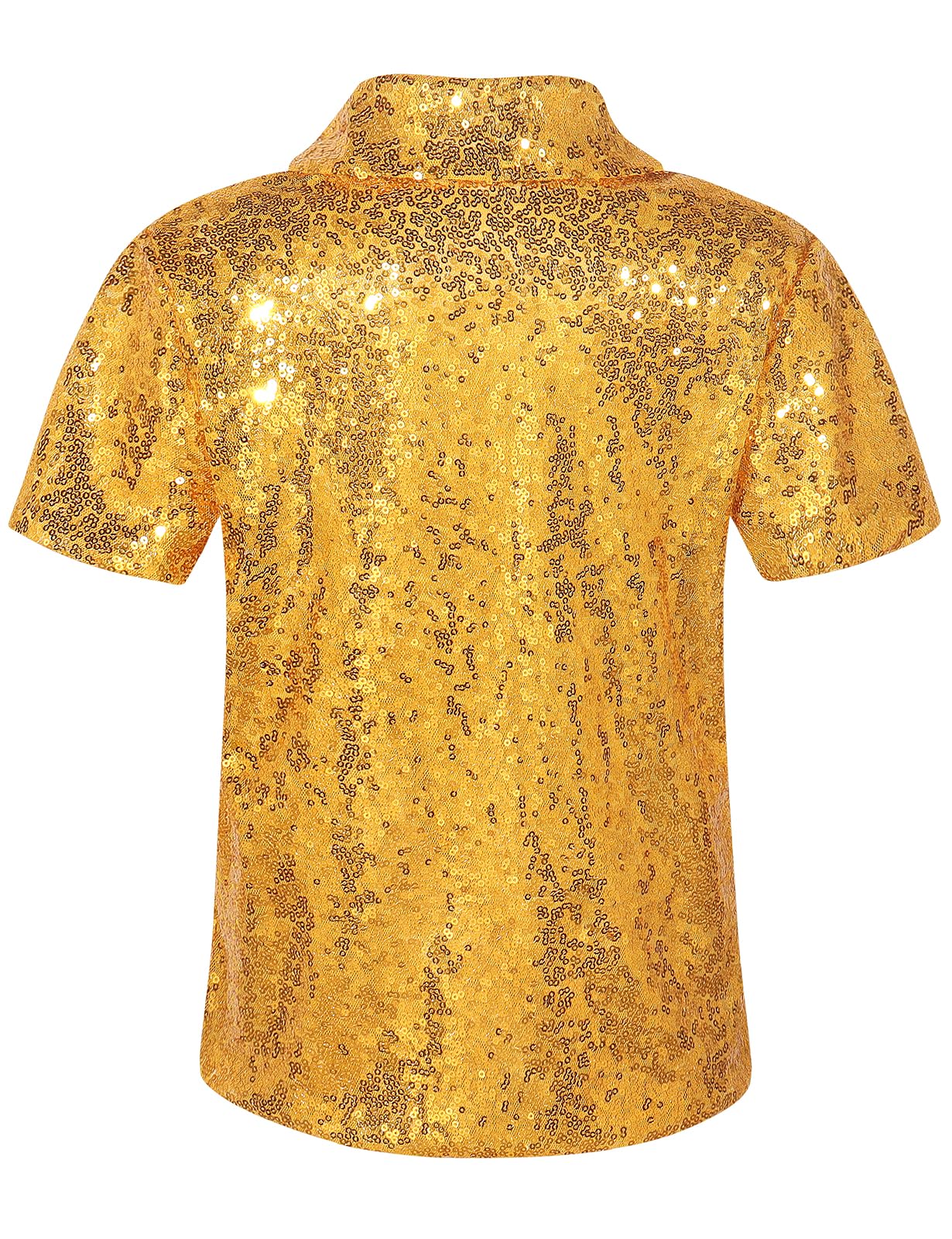 This kids shiny glitter shirt can match chino shorts, skinny pants, suit pants, slacks, jeans, etc., as you like, which creates a charming silhouette and adds to the overall dressy look