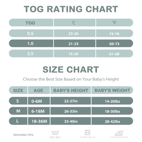 【ROOMY & LONGER WEAR】 Extra Leg Room / Length for kicking free (hip healthy) and room to grow, but cannot be kicked off. 1.0 TOG rating for the perfect all-season weight. Reinforced Stitching & Quilting for durability.