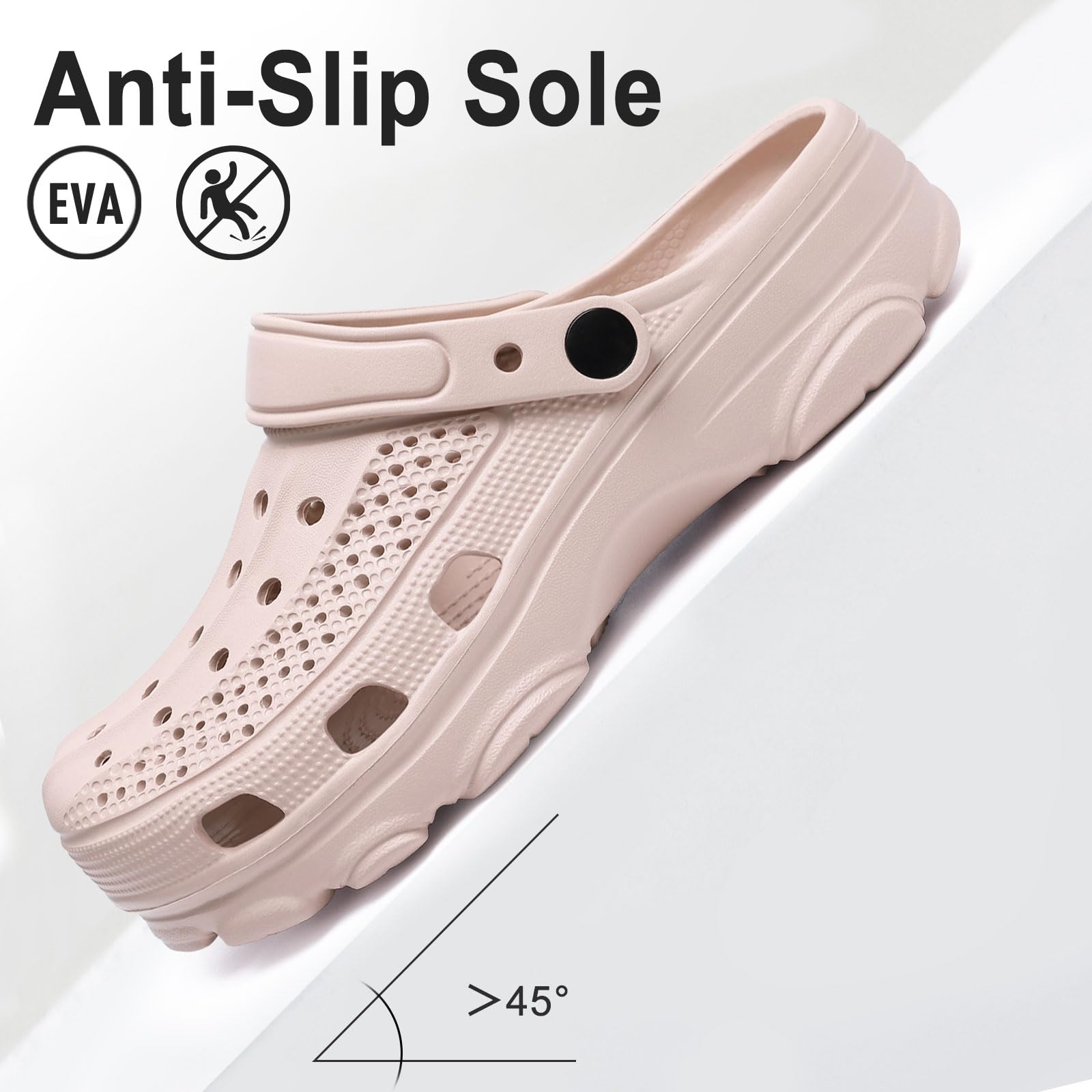 Soft and Comfortable: Our garden clogs are made of high-elastic, lightweight EVA material, with a roomy toe area that reduces foot pressure, and make you feel like walking on clouds
