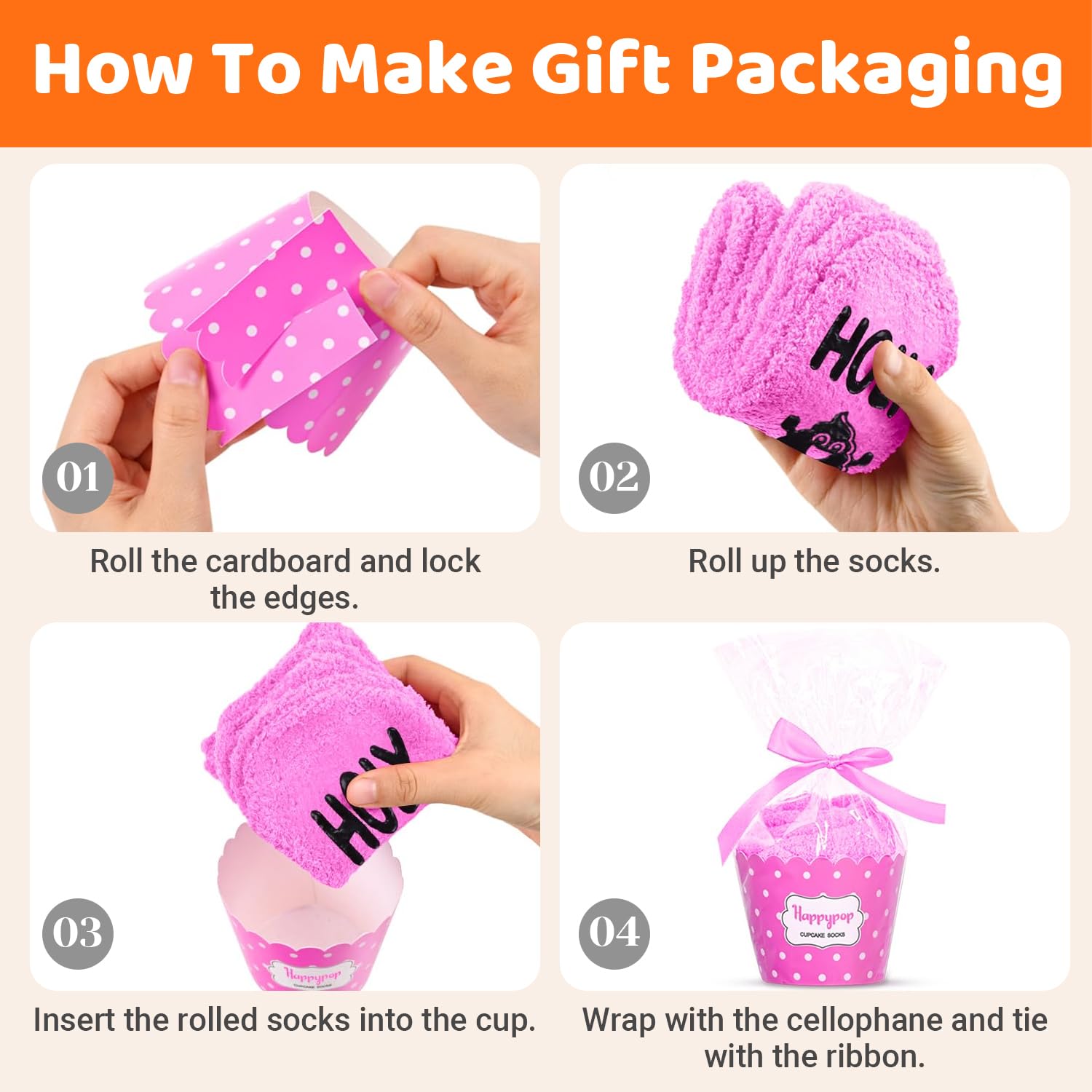 CUPCAKE PACKAGING: These socks are provided in a flat pack, which includes a gorgeous gift box and a paper belt for quick assembly into a cute cupcake shape.