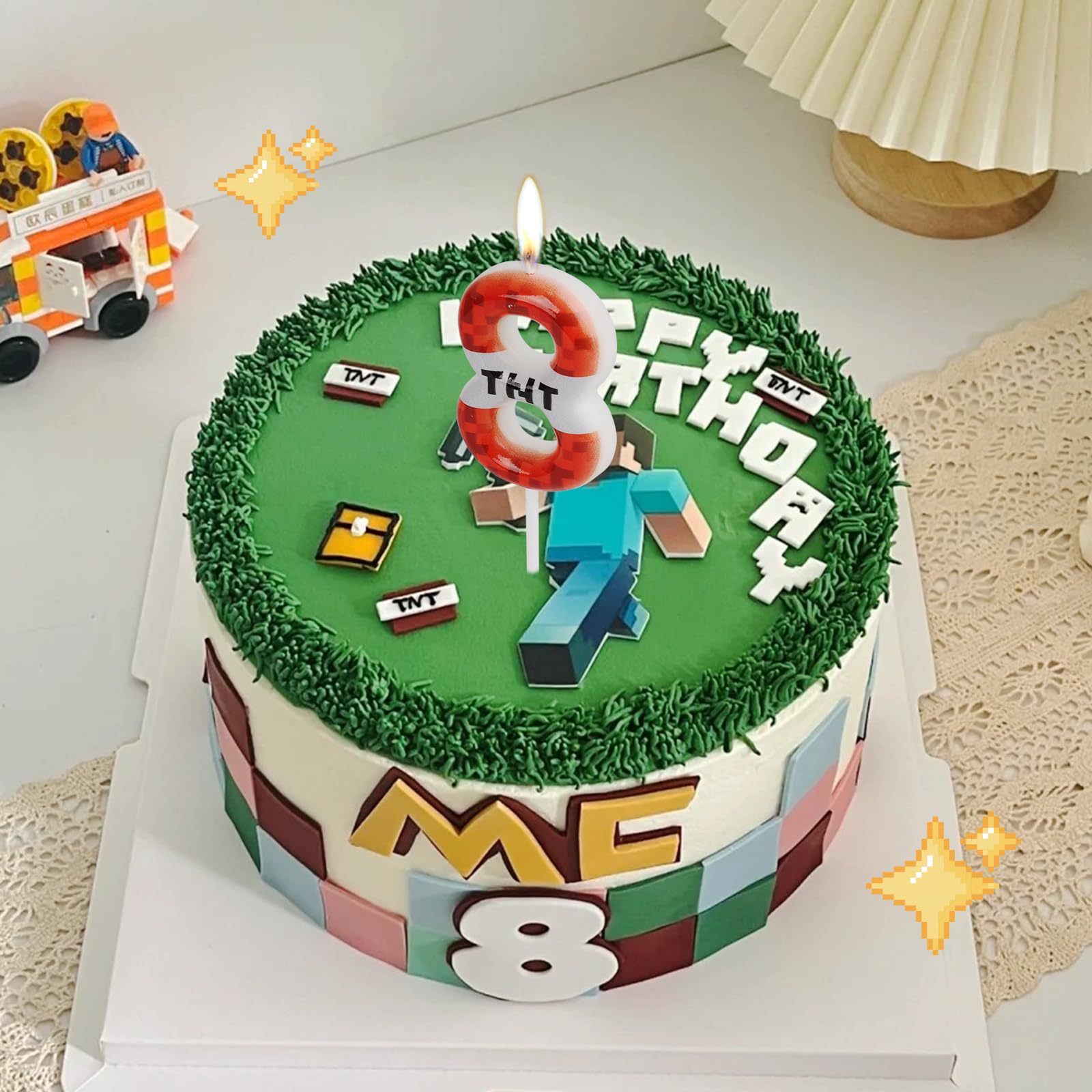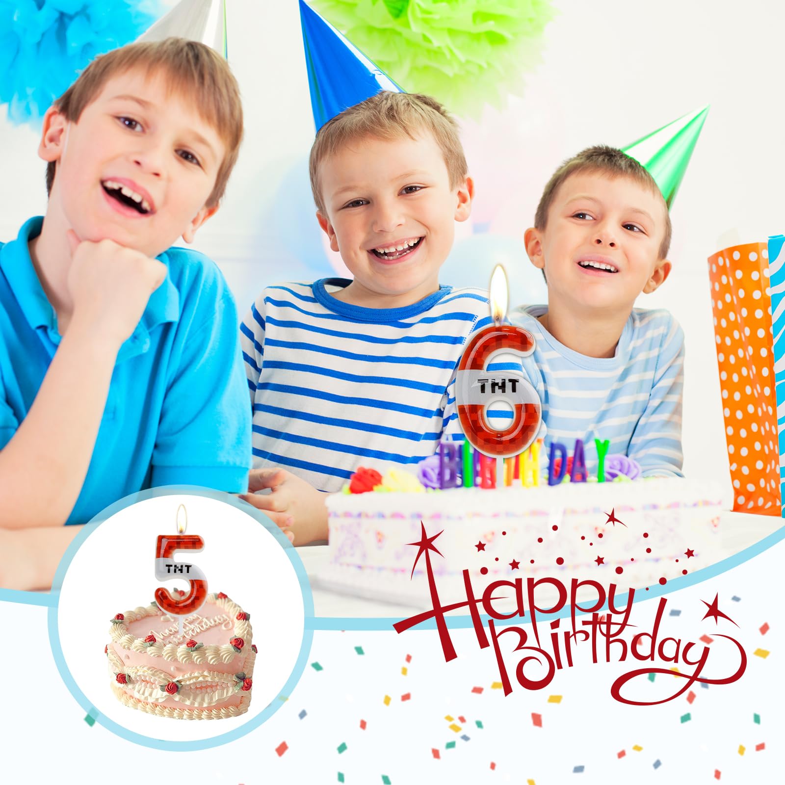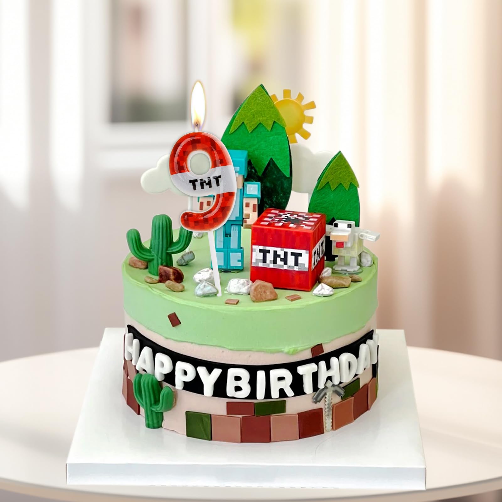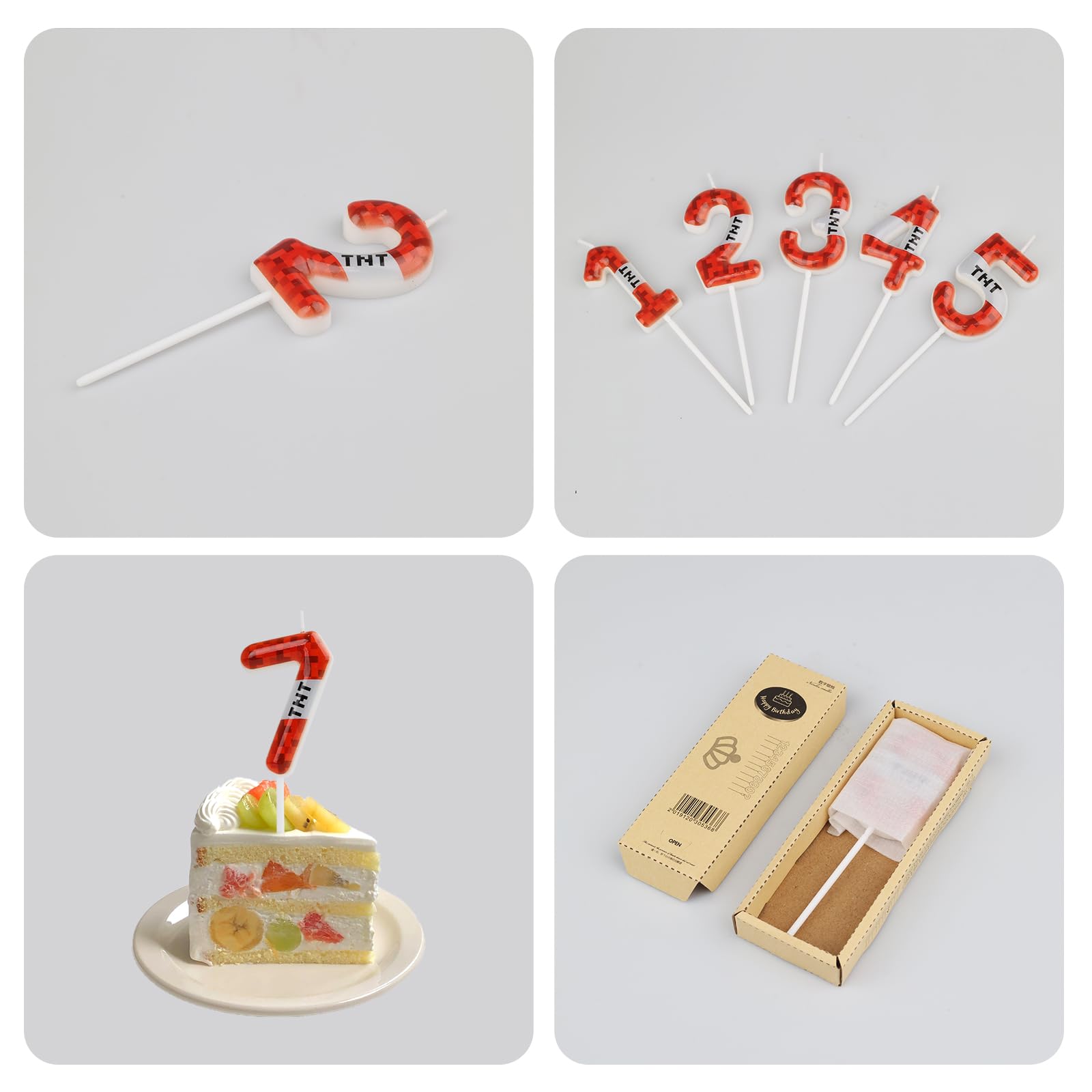 【Birthday Candles】:Our birthday TNT digital candles feature a red black design,The special red pixel pattern will bring a fun gaming atmosphere to your celebration,making you feel fun and happy,It is an ideal decoration for TNT themed birthday parties and events