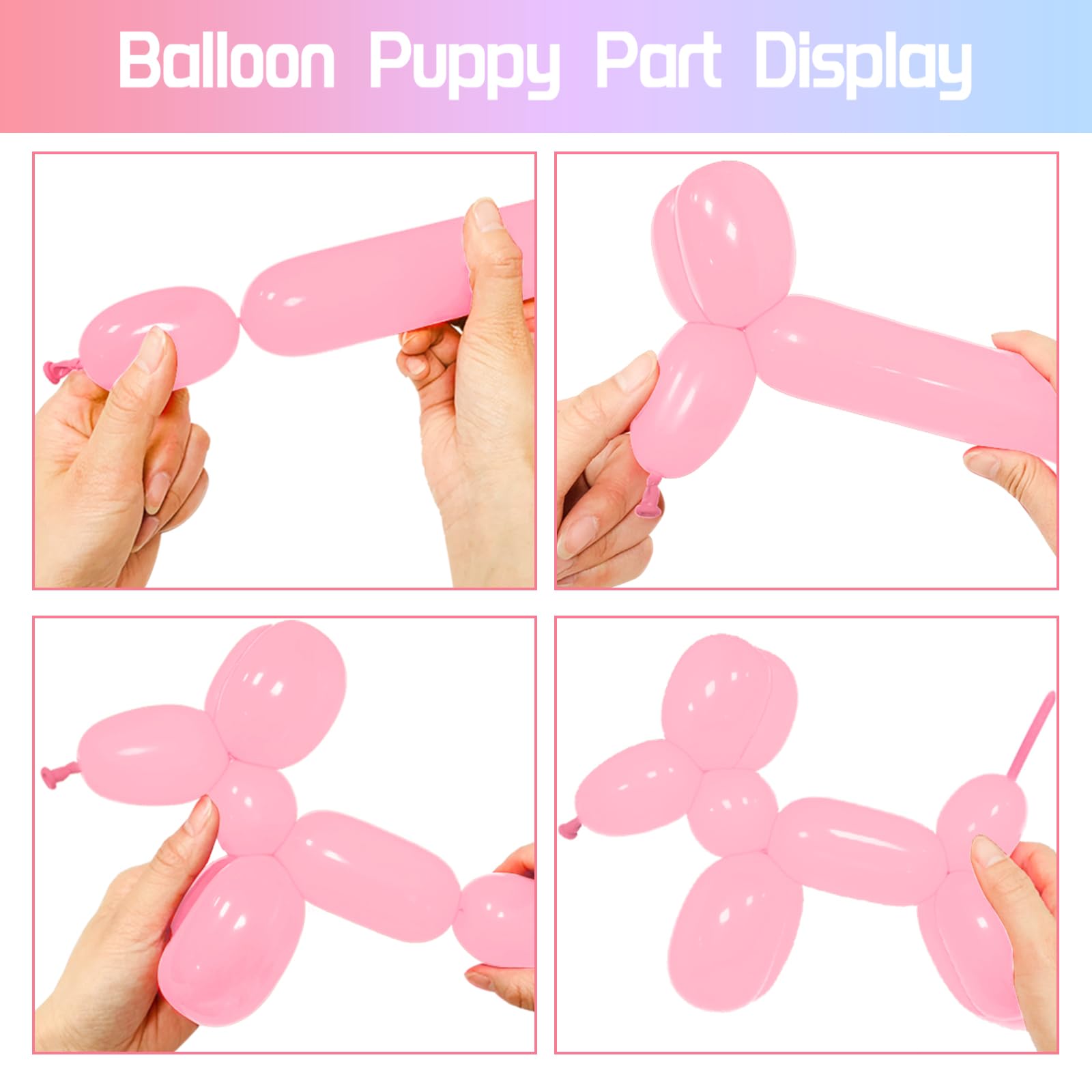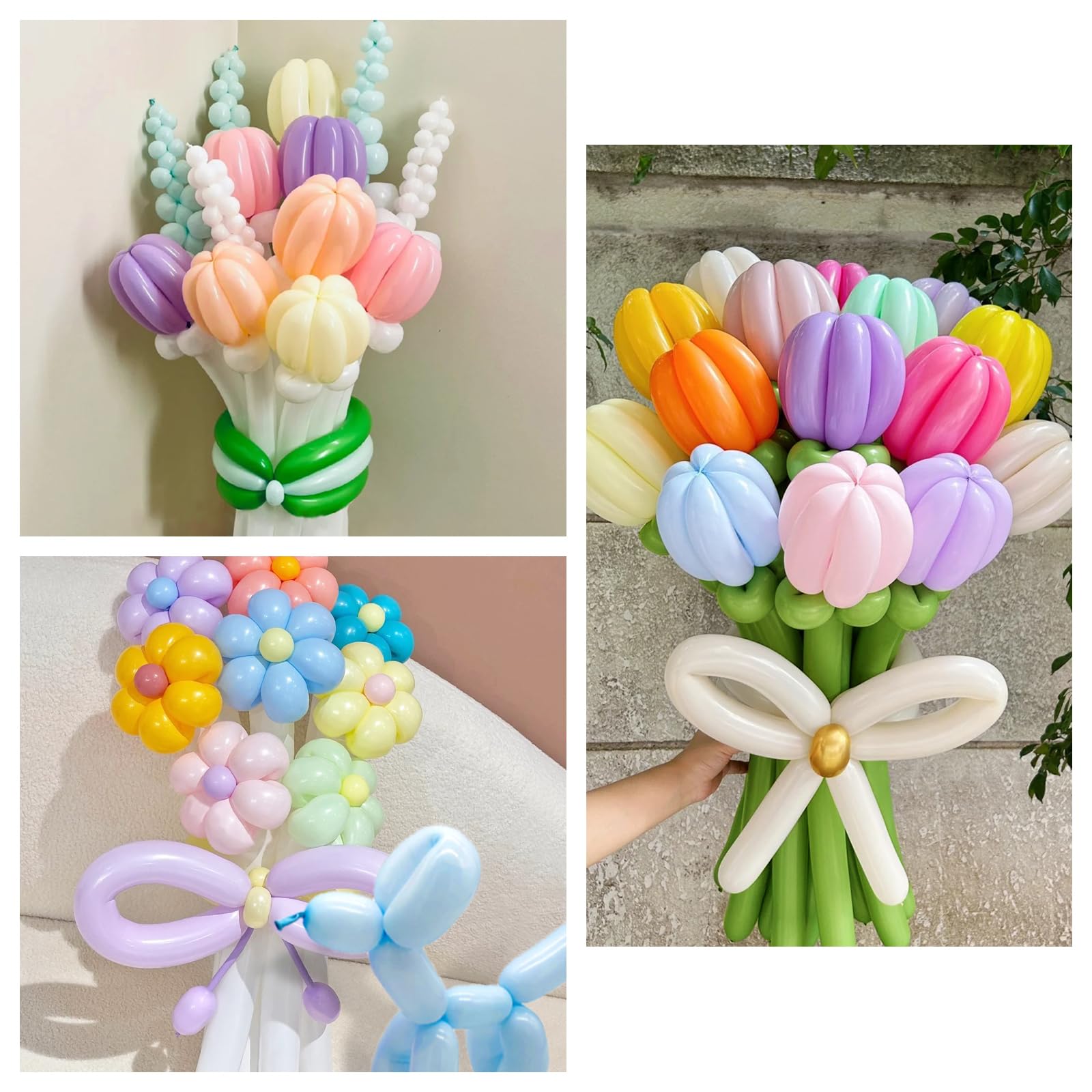 Applicable scenes: long balloons for balloon animals can siut for birthday parties, wedding celebrations, baby feasts, parent-child activities, and even home decoration, it can be perfectly adapted to easily create a romantic and cozy atmosphere.