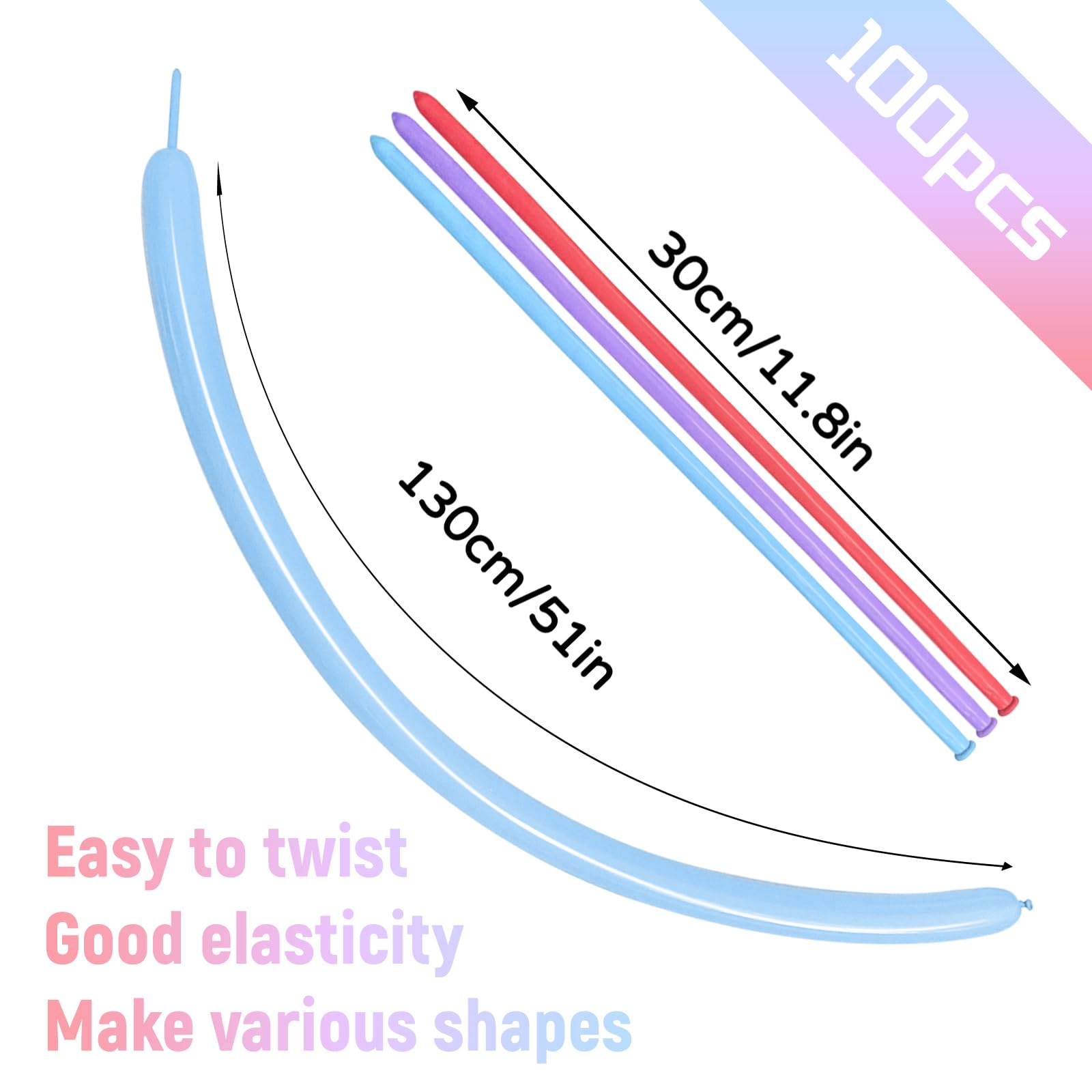 Elevate your party decorations with these multi 260 balloons. The package includes 100pcs of long balloons, perfect for birthday parties, baby showers, and other celebrations. Use an air pump for safe inflation and enjoy the endless possibilities for shaping these animal balloons.