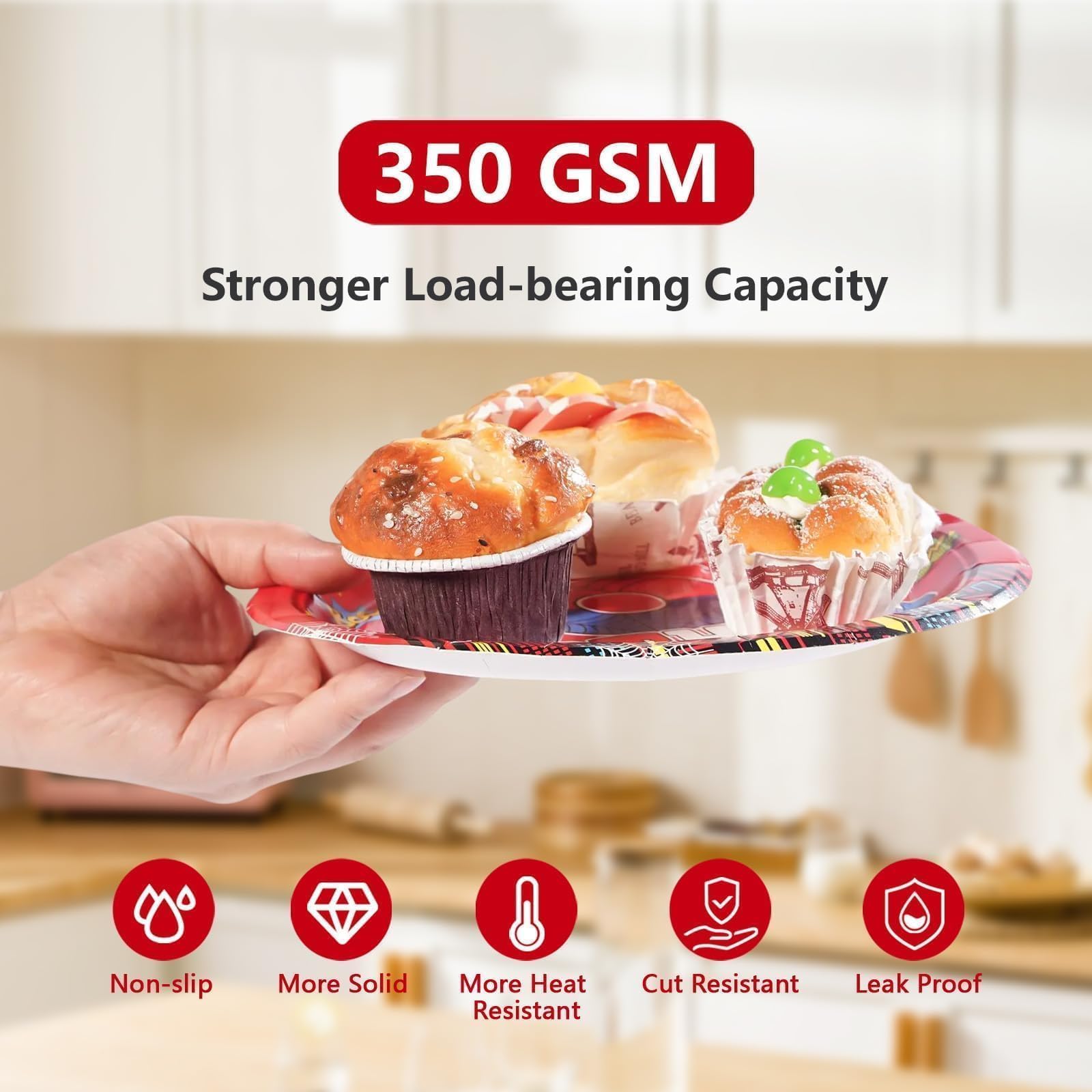 PREMIUM MATERIALS: Crafted from heavy-duty, food-safe materials that are exceptionally sturdy—as strong as spider silk! These plates are leak-proof, so no worries about spills or seepage. The ultra-absorbent napkins feature a luxuriously thick construction, while the forks are made of high-quality, break-resistant plastic. Vibrant red and blue colors stay bright after party, giving you a trustworthy celebration choice