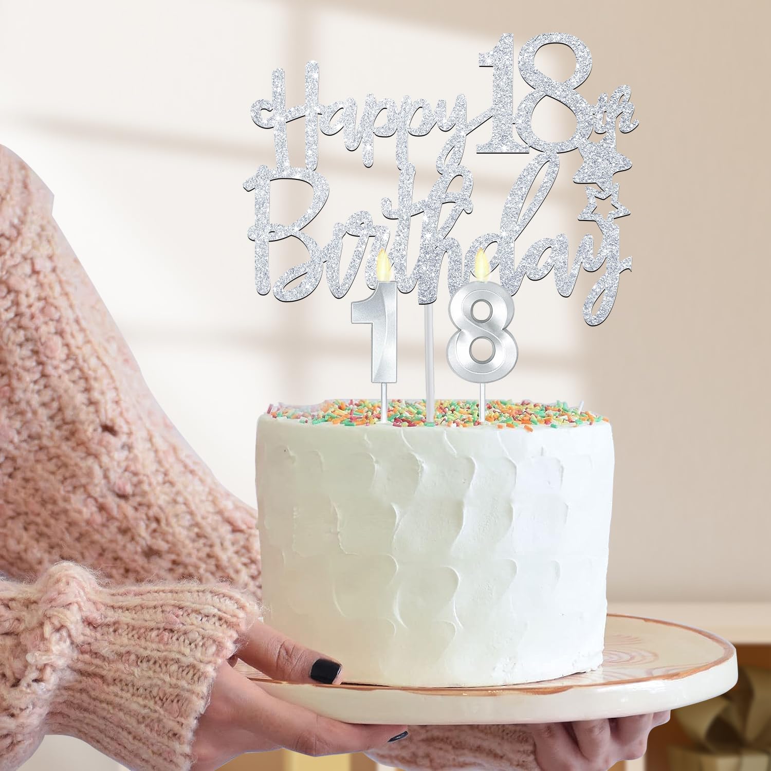 18 Cake Topper and 18 Candles: The silver happy 18th birthday cake topper is a funny choice for your party cakes. And silver 18 candles for 18th birthday candles in numbers 1 and 8 are packed individually. They are good to embellish your cake and cupcake. These decorations will add much fun to your 18th birthday party