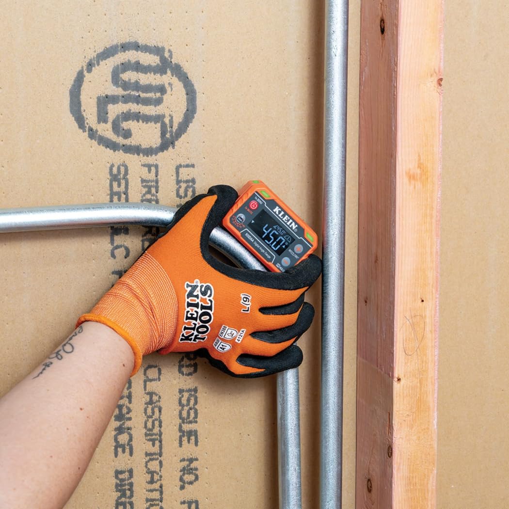 Klein Tools 80155 Digital Angle Gauge with Angle Alert and Plumber's Kit easily attaches to ferromagnetic surfaces, allowing users to measure, set, and check relative angles. Gauge can also be utilized as a convenient digital level. The Angle Alert features uses LEDs and a buzzer to notify the user when their desired angle is reached without looking at the screen. Dual measurement ranges 0 to 90-Degree and 0 to 180-Degree with a high visibility reverse contrast display for easy viewing. Digital Angle Gauge (Cat. No. 935DAA) attaches to Plumbers Kit (Cat. No. 69346) to work on non-magnetic surfaces.